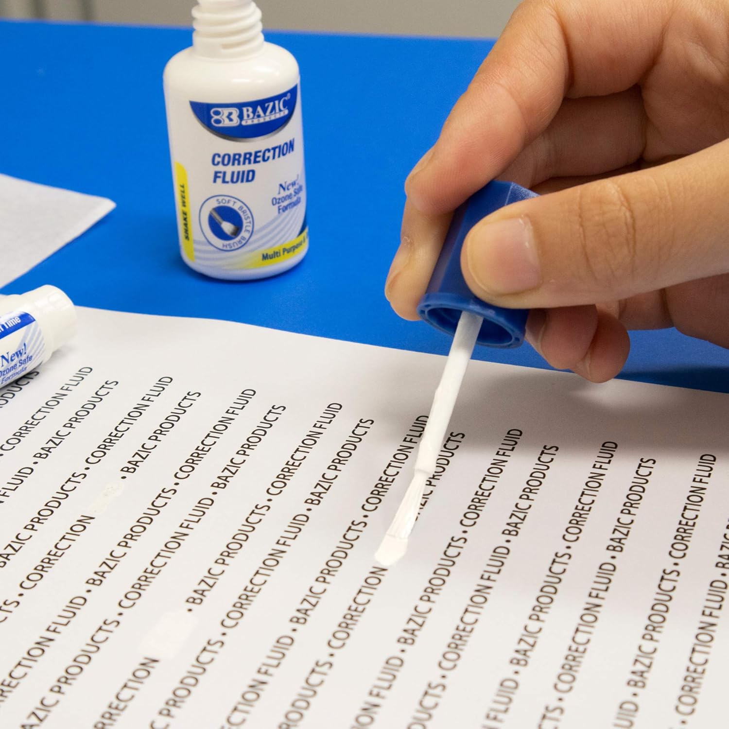 BAZIC Correction Fluid (0.7 oz / 20 ml), Soft Bristle Brush Applicator, Instant Corrections Pen White Out Wipe Out Liquid (2/Pack), 2-Packs