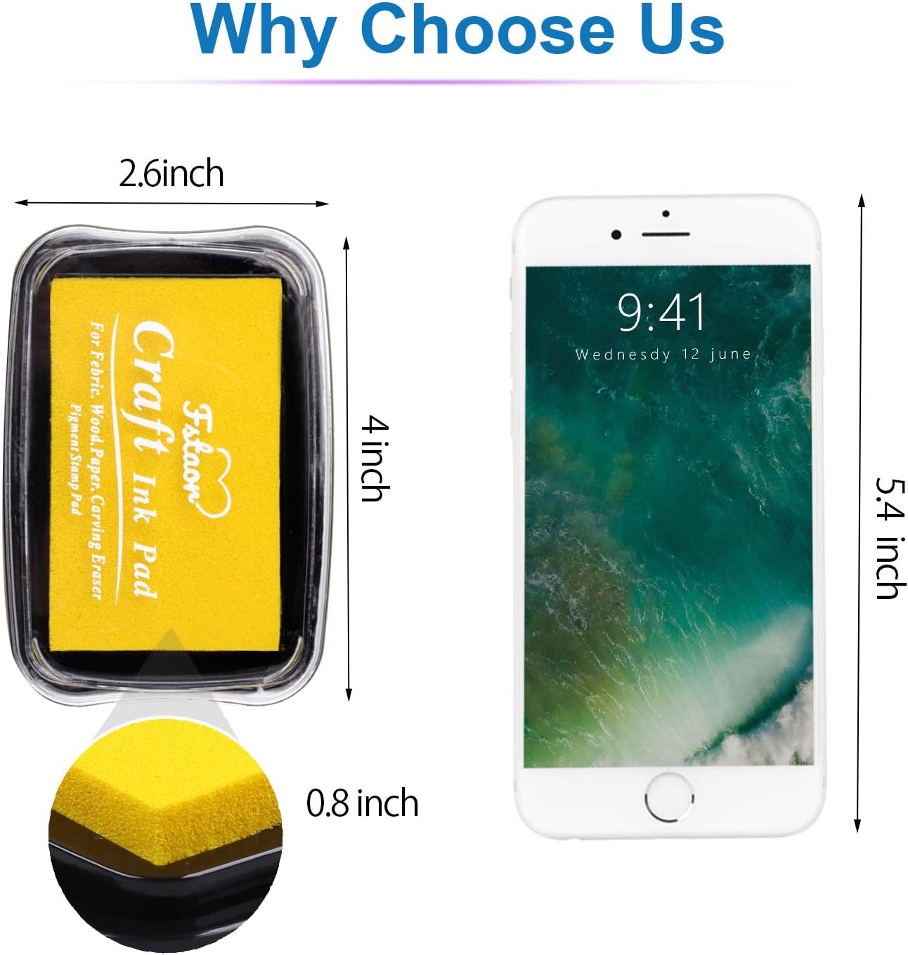 Fstaor Craft Large Ink Pad for Rubber Stamps, Non-Toxic Washable Safe Stamp Pads for Kids, Ink Pads Permanent for Paper Wood Fabric (Pack of 12)