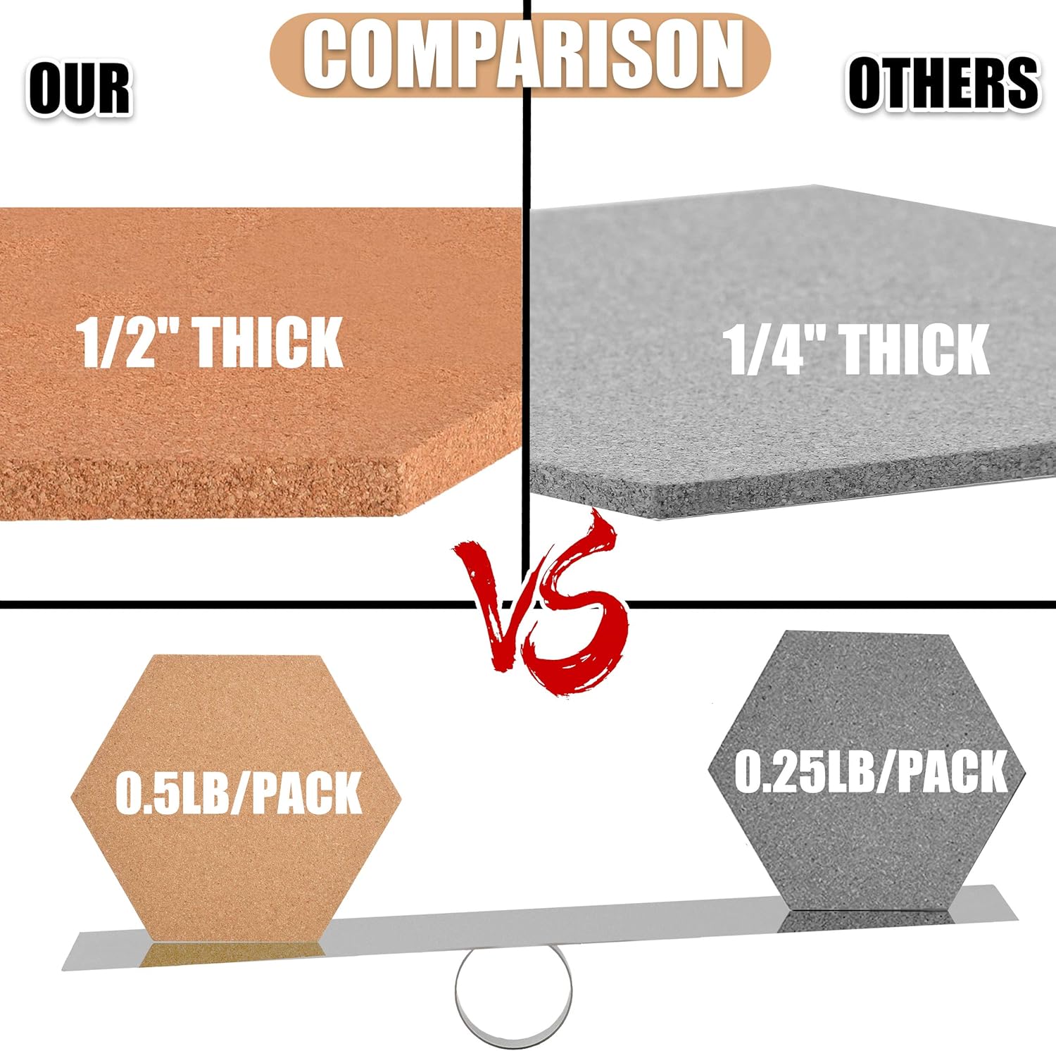 - Thick Natual Hexagon Cork Tiles - 1/2 inch thick natural cork board tiles/pin boards for walls decorative - hexagon tiles thick enough to hold push pins and so that push pins will not go through your boards & damage your wall.