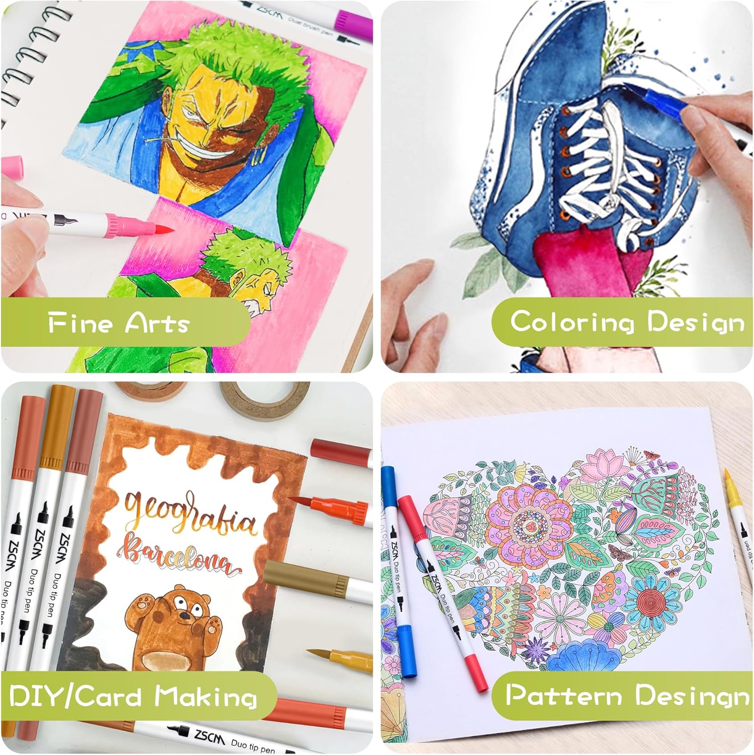 - BRIGHT AND LONG LASTING:ZSCM 72 colors Duo tip brush markers 2 different tips: 0.4mm fine tip and 1-6mm brush tip, flexible and strudy. Fine tip is great for sketch outlining thin lines and soft brush tip for shading and quickly color in large areas art project. Perfect brush marker set for your next masterpiece.