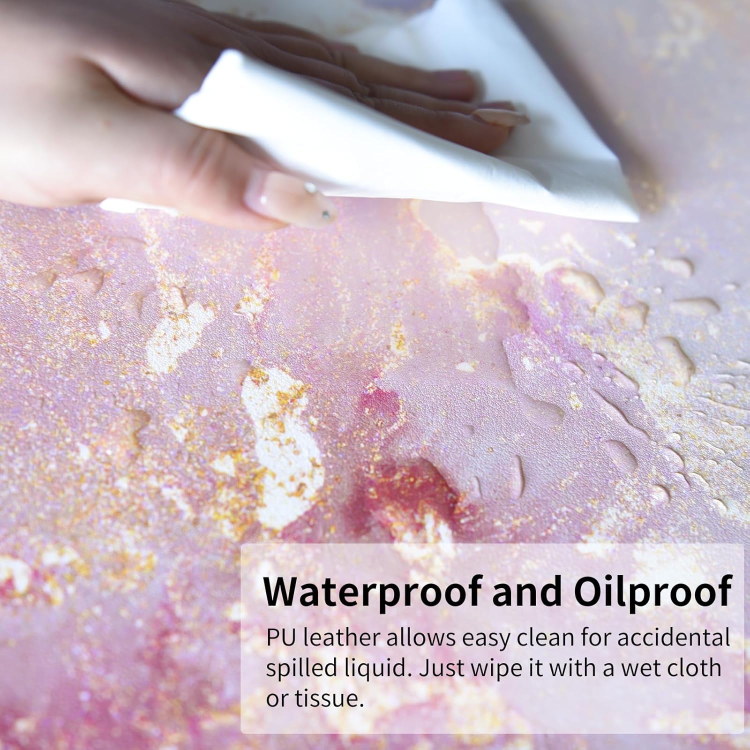 - Waterproof & Easy to Clean Desk Cover - Made of water-resistant and durable PU leather, this rose gold mouse pad help prevent your desk from damages such as scratches, stains, spills and heat. Easy to clean, just wipe with a wet cloth or tissue.