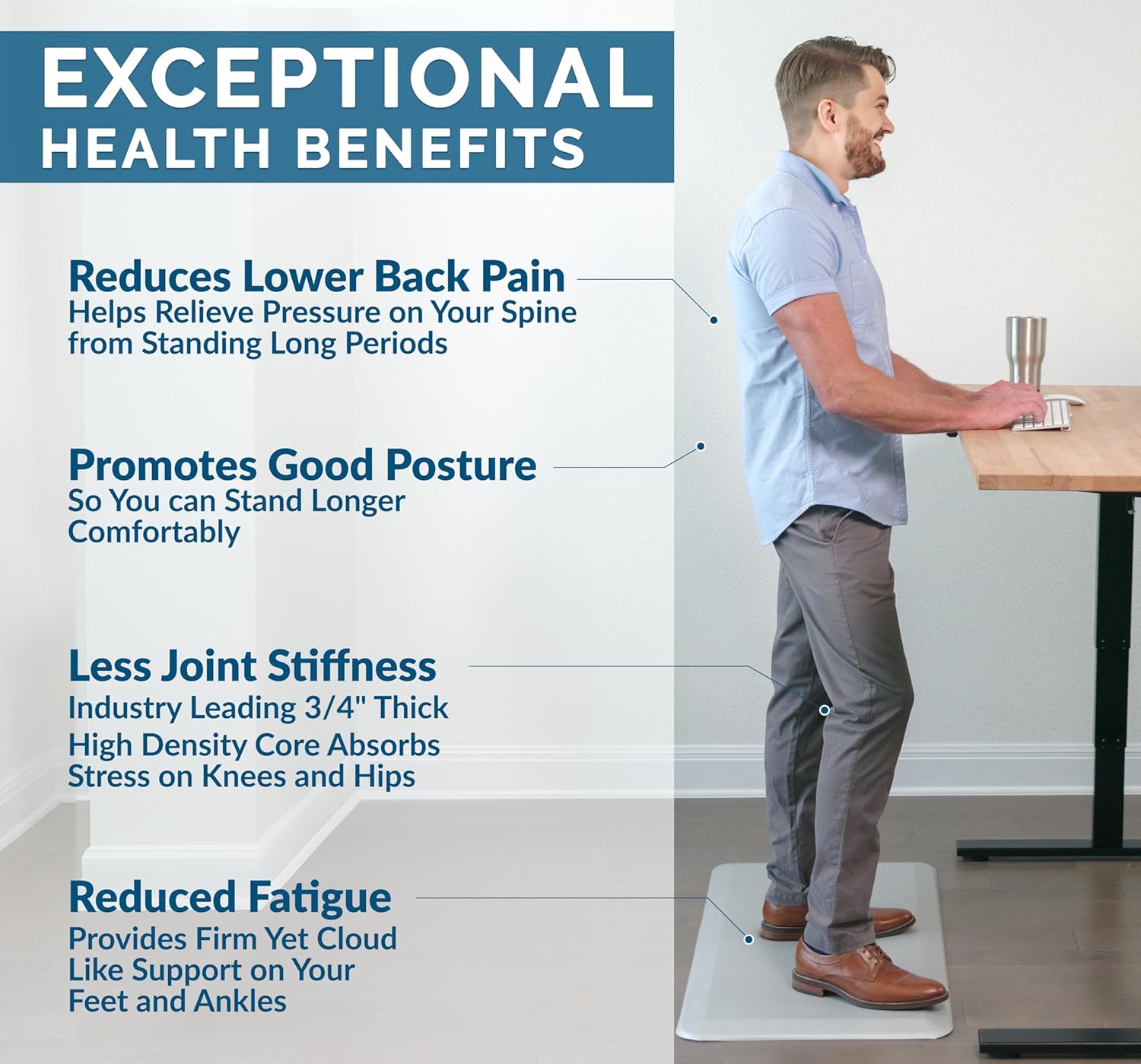 - Easy to Clean and Maintain: Simply wipe down the standing desk mat or anti-fatigue kitchen mat with a damp cloth for quick and easy maintenance, keeping your space clean and comfortable.