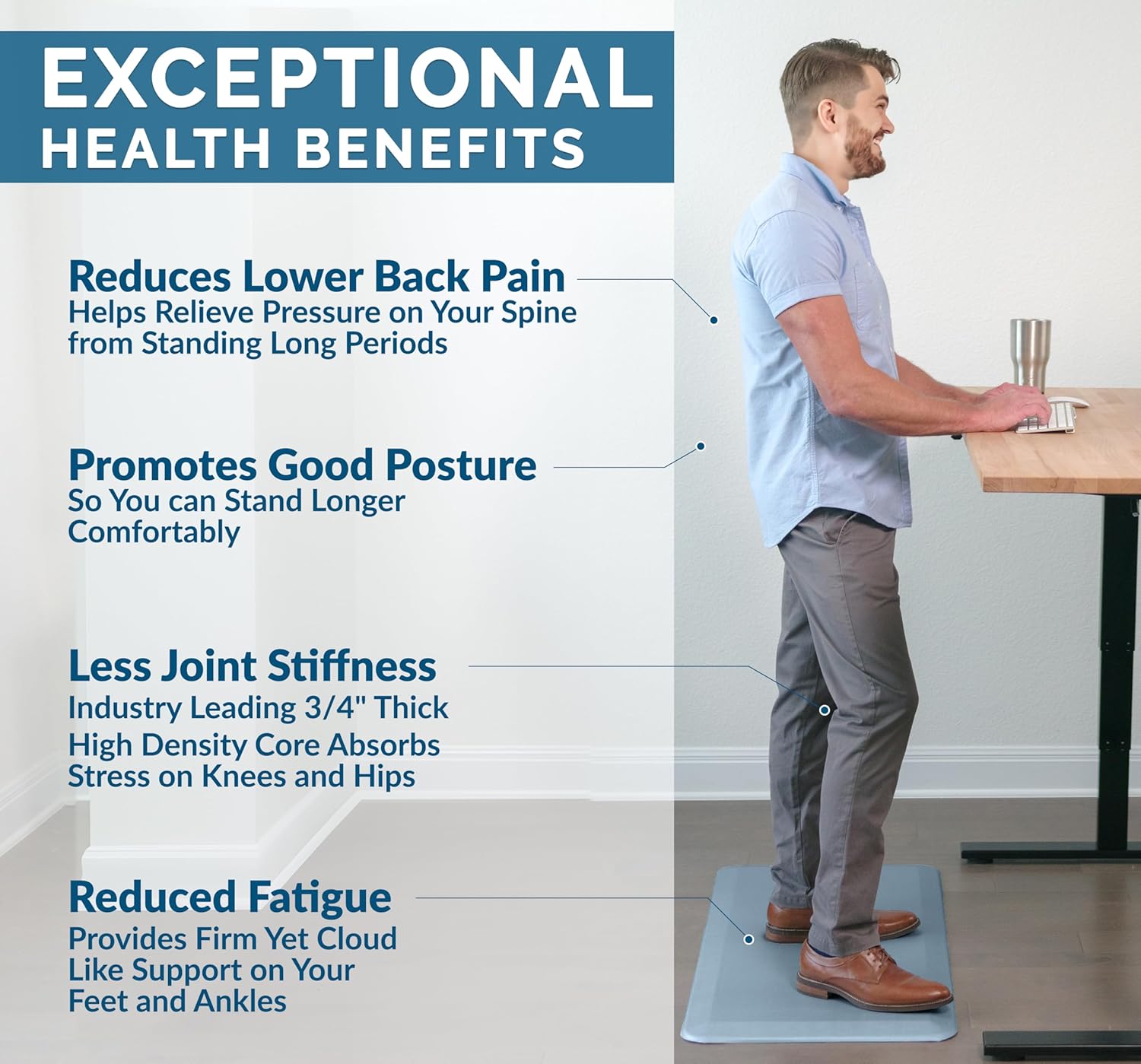 - Anti Fatigue Mat: The ComfiLife anti-fatigue floor mat enhances comfort while standing. It is professionally engineered and can be used as padded kitchen mat or for your standup desk that will not lose support over time