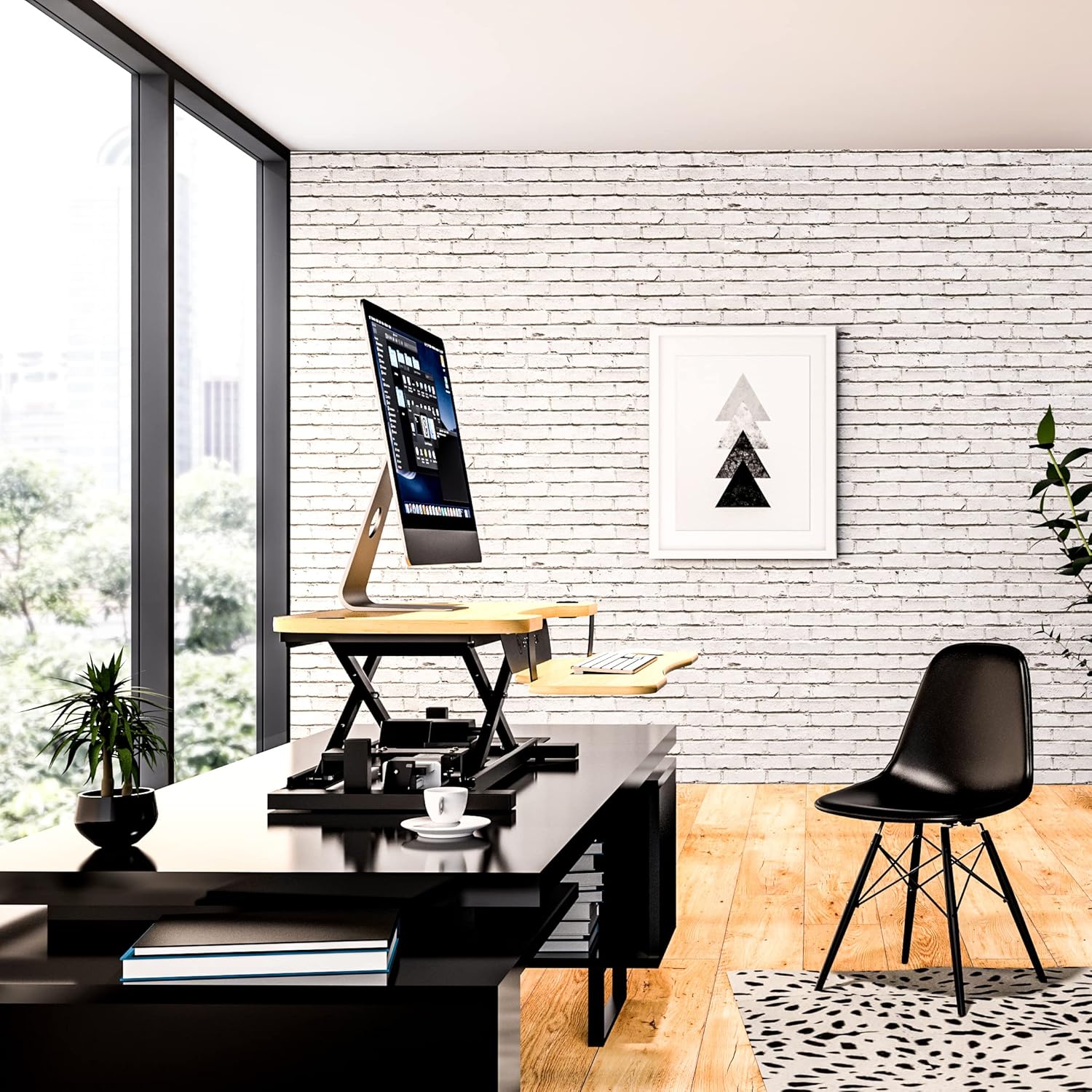 - ✔️ STABLE AND POWERFUL – Built with a carbon steel frame, the desk converter can lifts up to 80 lbs and remains stable, sturdy and smoothly adjust to any height settings; With the push of a button, the desk converter moves up or down quickly, and easily and with no predetermined stopping points