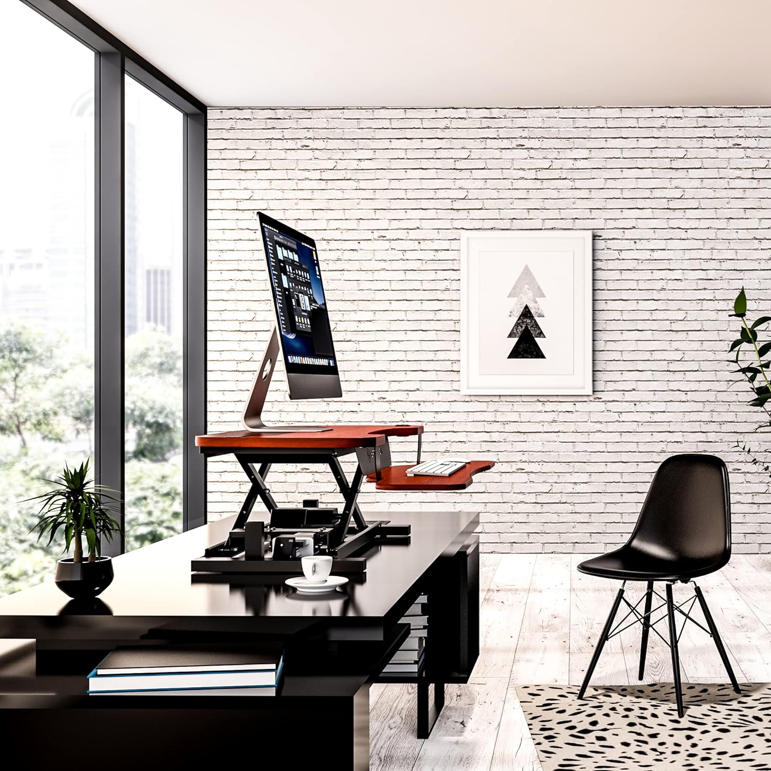 - STABLE AND POWERFUL - Built with a carbon steel frame, the desk converter can lifts up to 80 lbs and remains stable, sturdy and smoothly adjust to any height settings; With the push of a button, the desk converter moves up or down quickly, and easily and with no predetermined stopping points