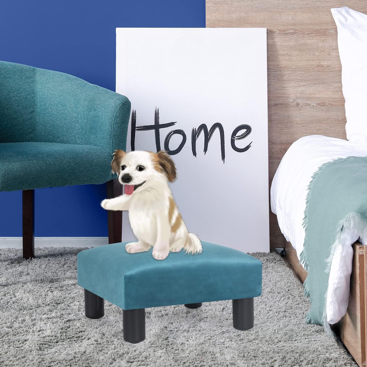 Joveco 15.7'' Small Footstool Ottoman Upholstered Soft Footrest with Non-Skid Plastic Legs, Foot Rest for Desk Couch Living Room Bedroom Office (Blue)