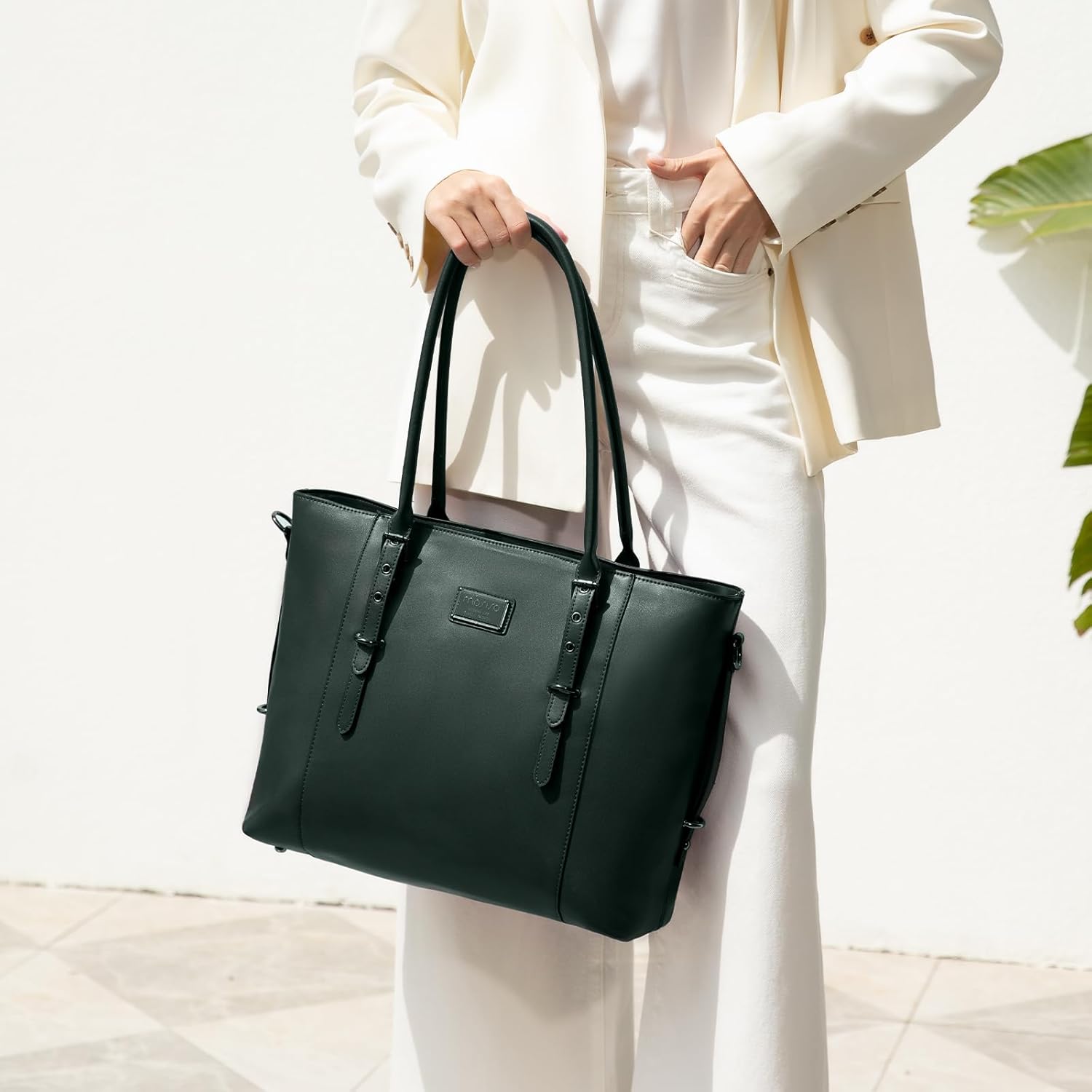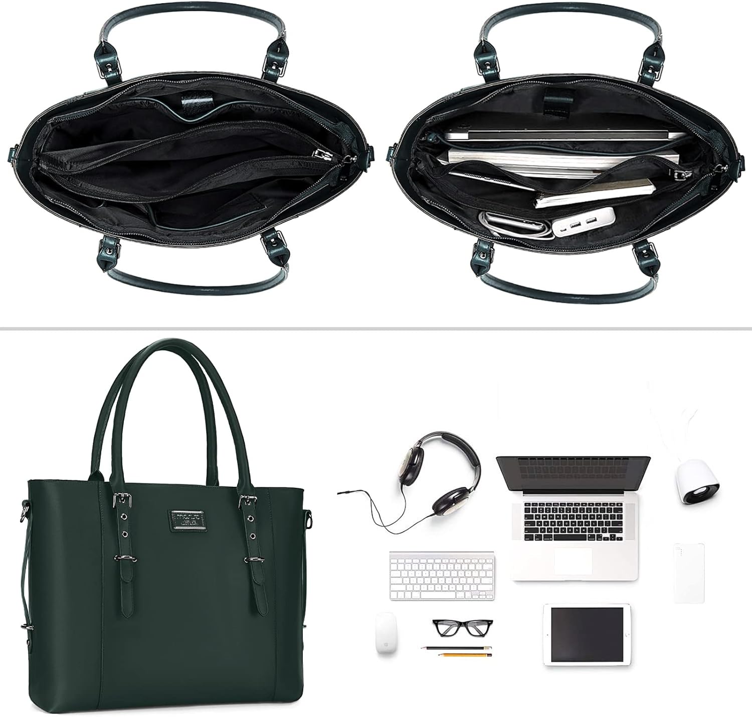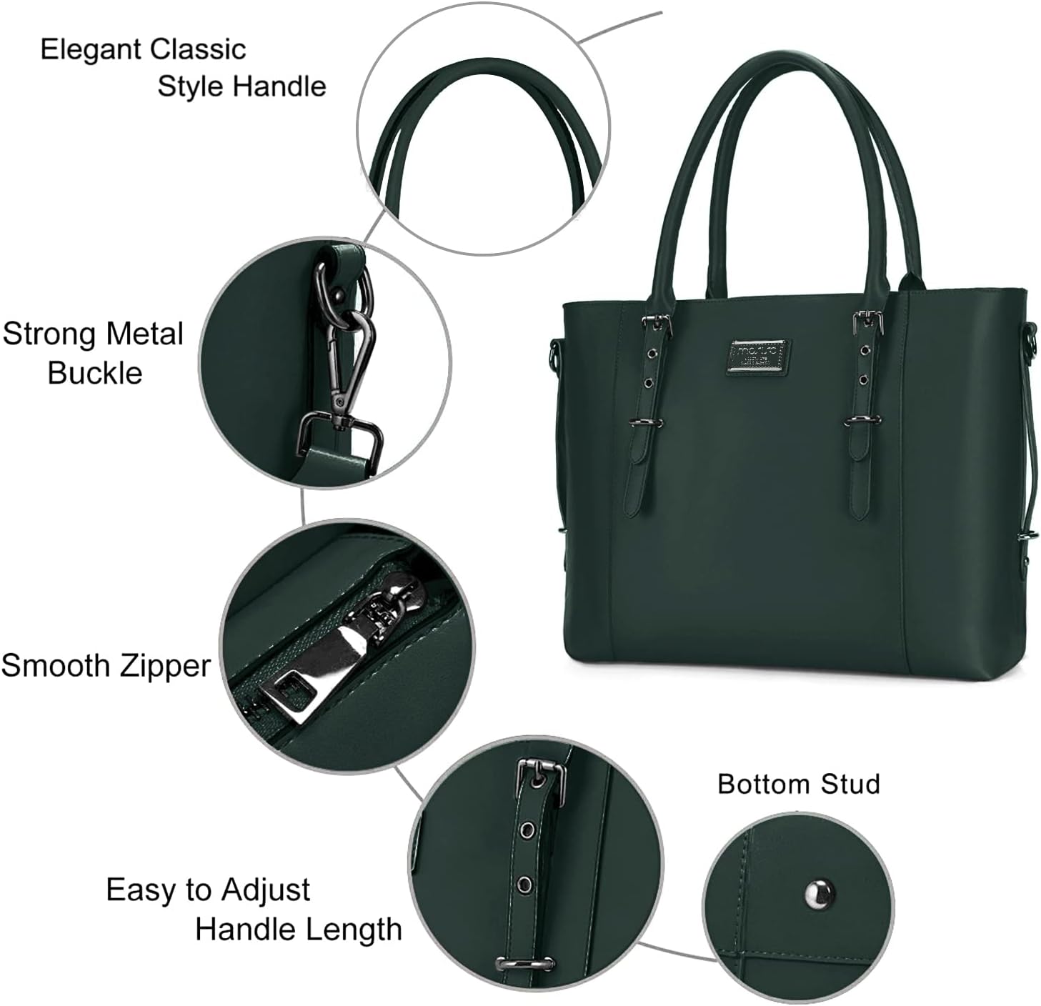 MOSISO PU Leather Laptop Tote Bag for Women, Waterproof Large Capacity Business Work Briefcase Shoulder Laptop Bag
