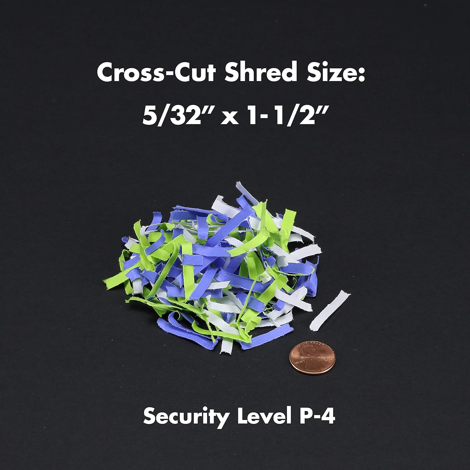 - Shreds paper, CDs, DVDs, credit cards into small pieces (5/32 by 1-1/2 inches), security level P-4