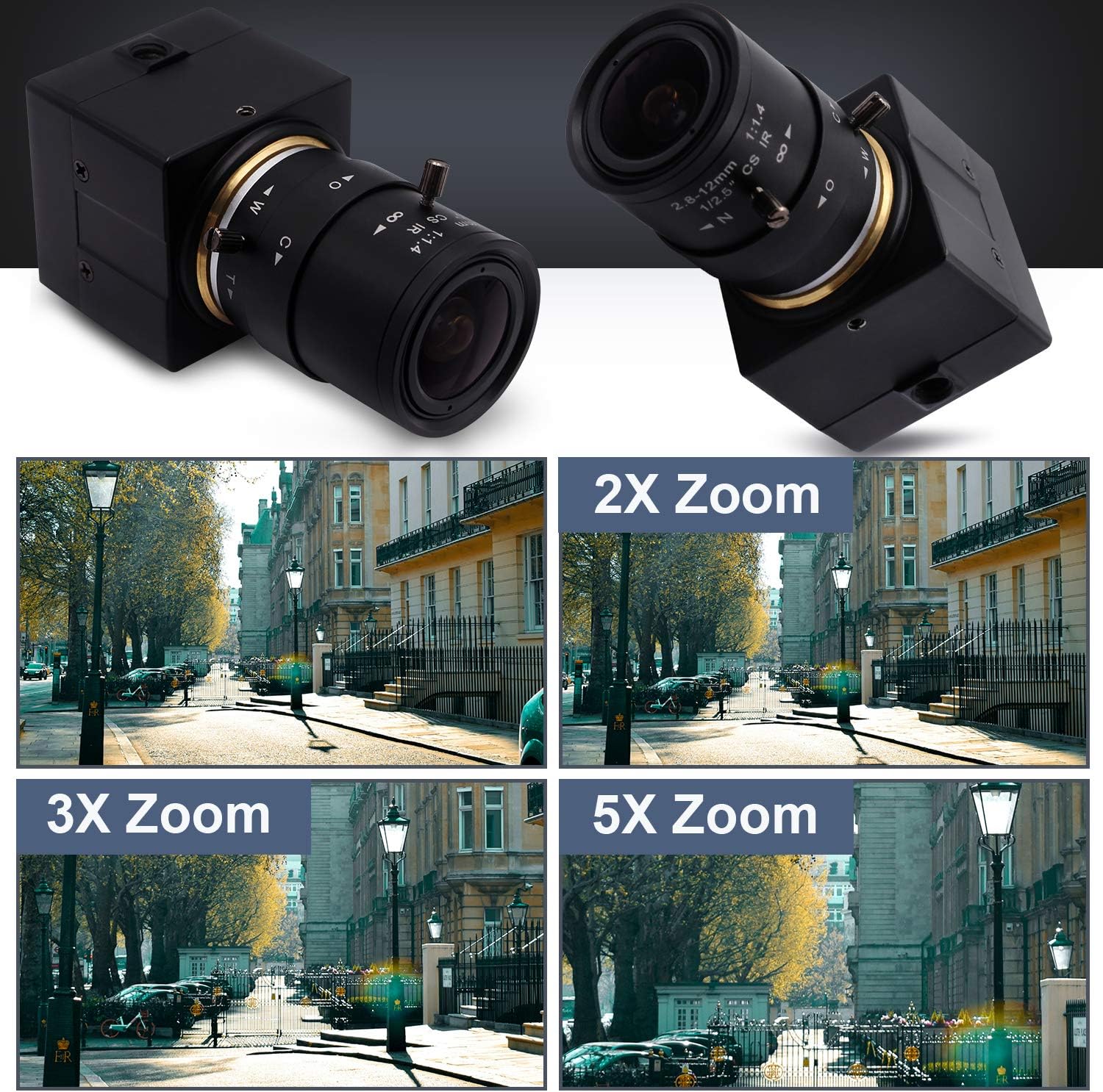 - 【2.8-12mm Varifocal Lens】: Optical zoom camera with CS mount 2.8-12 variable lens. Simple zoom and manual adjustments(focus, aperture and focal length) give you creative controls for different angles and viewings