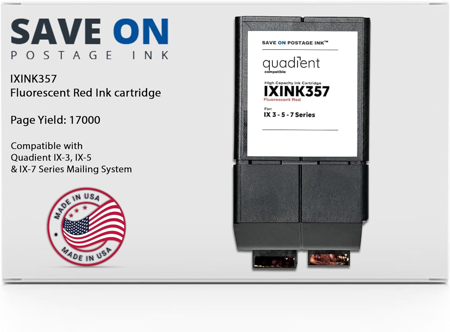 Compatible IXINK357 Quadient Neopost Ink Cartridge (1 Pack, Standard Capacity) - Fluorescent Red Printer Ink Cartridge for IX3 IX5 & IX7 Mailing System & Postage Meter - Replacement Inkjet Printer Ink