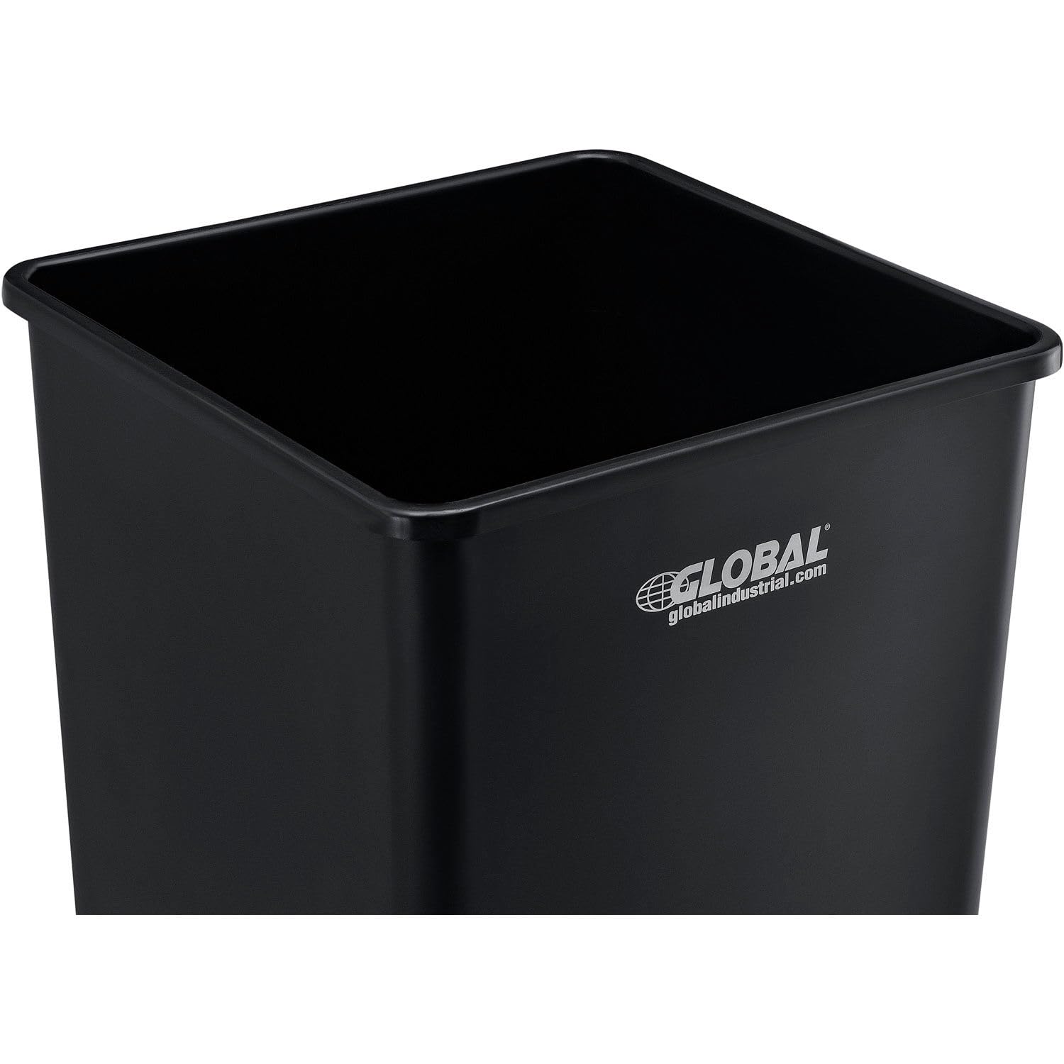 Global Industrial Square Plastic Garbage Can, Open Top, 55 Gallon Capacity, Indoor/Outdoor Rated, 19-1/2"W x 19-1/2"D x 34"H, Utility Trash Can, No Lid, Black