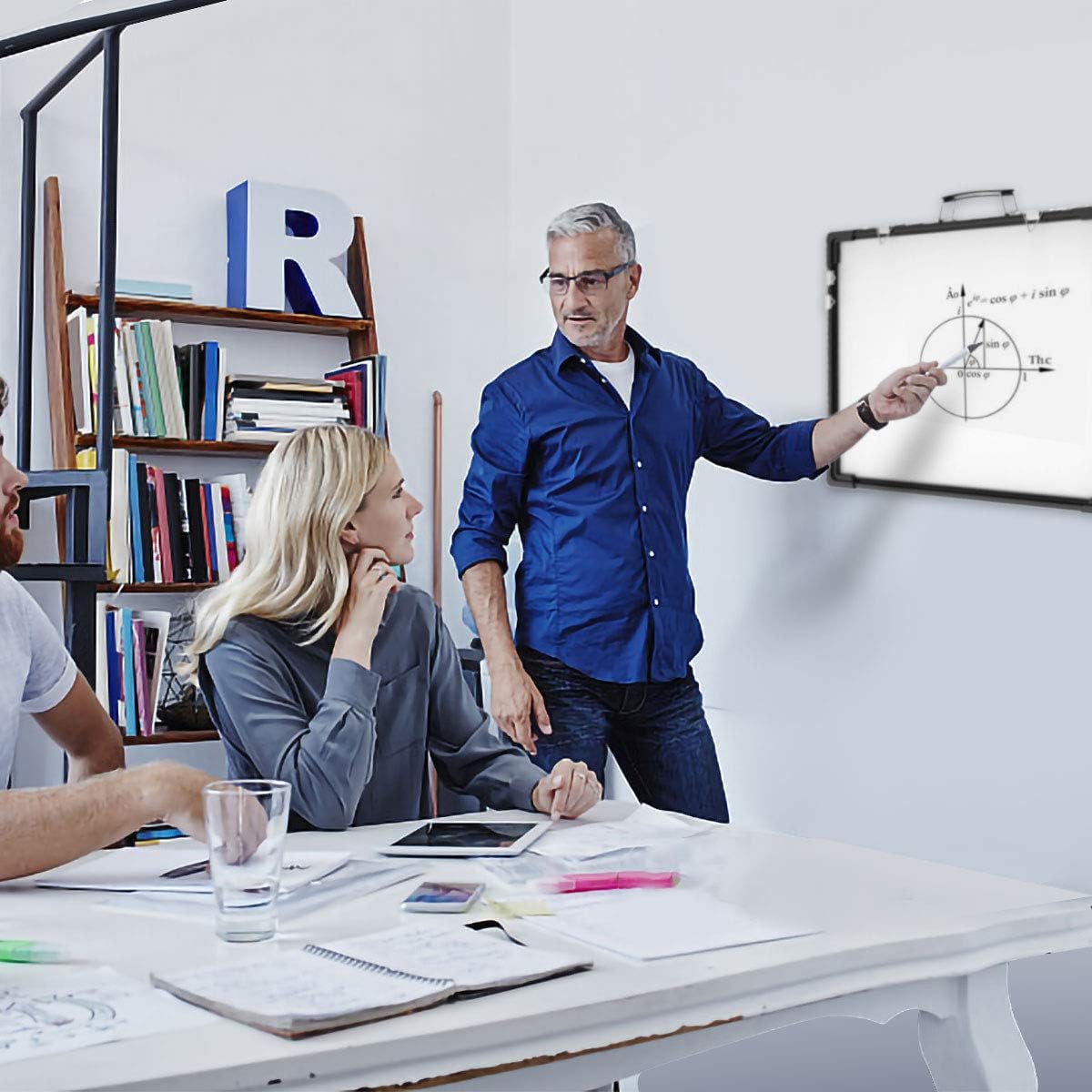 - [FLEXIBLE MULTI-USE] - This portable whiteboard is a good idea for home, office, school, kitchen, game room, cubicle, etc. The dry erase boards assists children and adults with notetaking or tasks. The foldable white board is perfect for children to learn and does not waste paper. The dry erase boards also presents another form of communication.