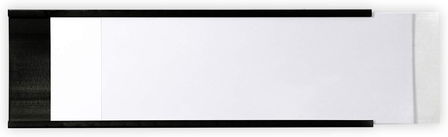- DESIGN. The 100% magnetic material assures total adhesion in any application, while the unique C-channel design lets you slide the label easily.