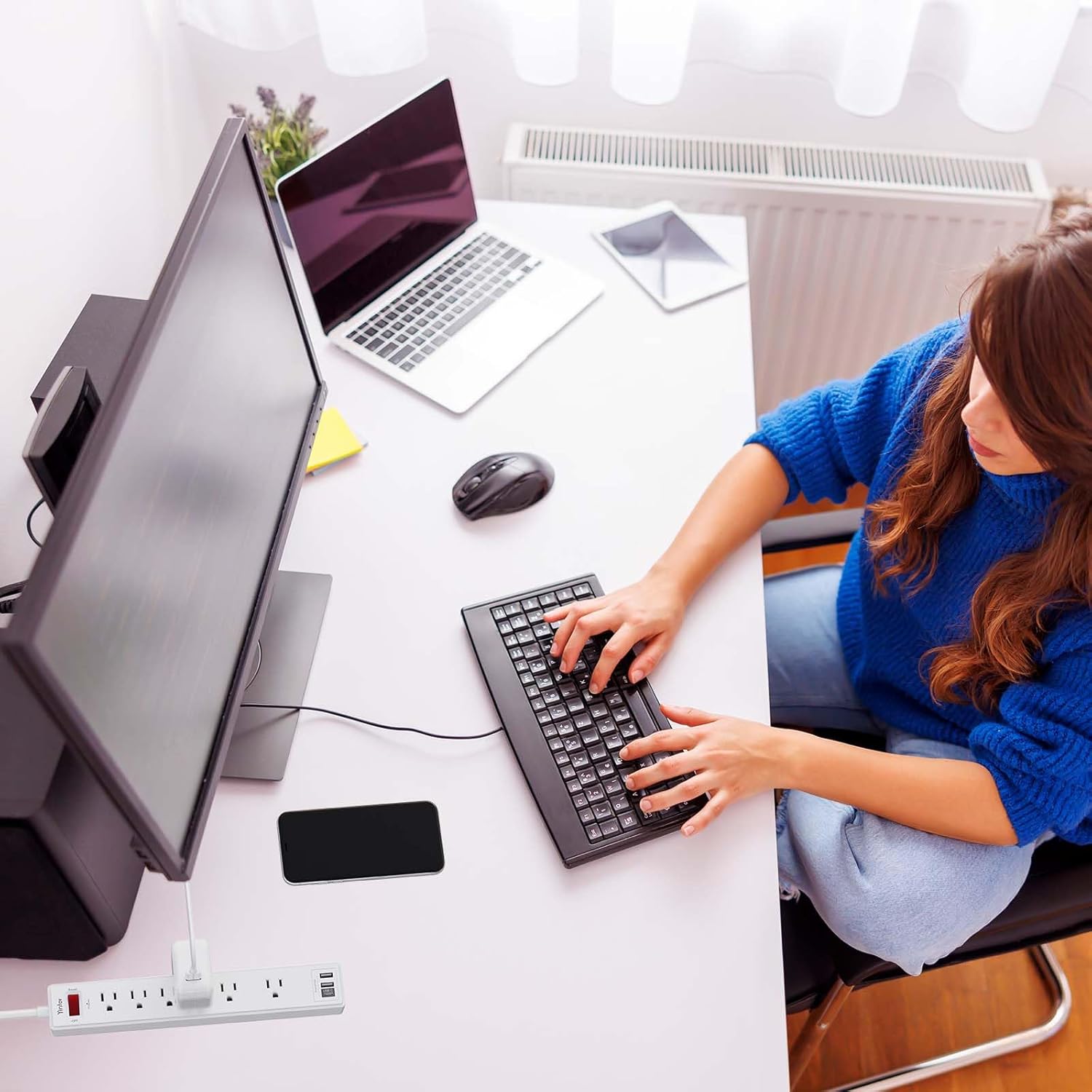 - 6 Feet Flat Plug Power cord with Cable Ties: - 6 Ft Extension Cord makes it more flexible, Reusable Fastening Cable Ties Can tie up the unused cord and make it better organized. the Mounting hole at the back allows this wall mount power strip to be securely installed in various applications, such as wall mounts, floor mounts, workbenches, under counters & more.