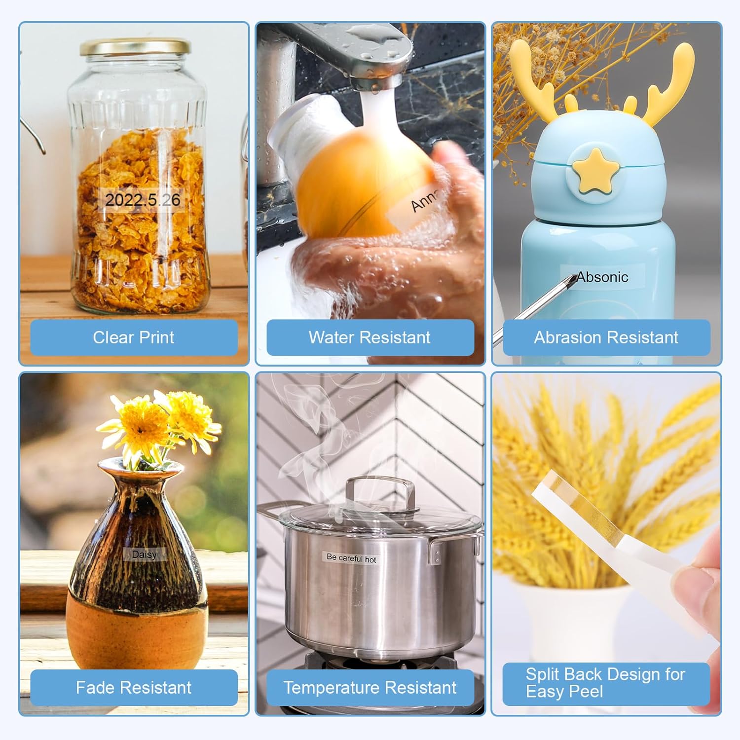 - Applications: Absonic 12mm 0.47" Label Tape used for indoor and outdoor. Widely used in offices, home, supermarkets, laboratory, library, warehouses, hotel and so on