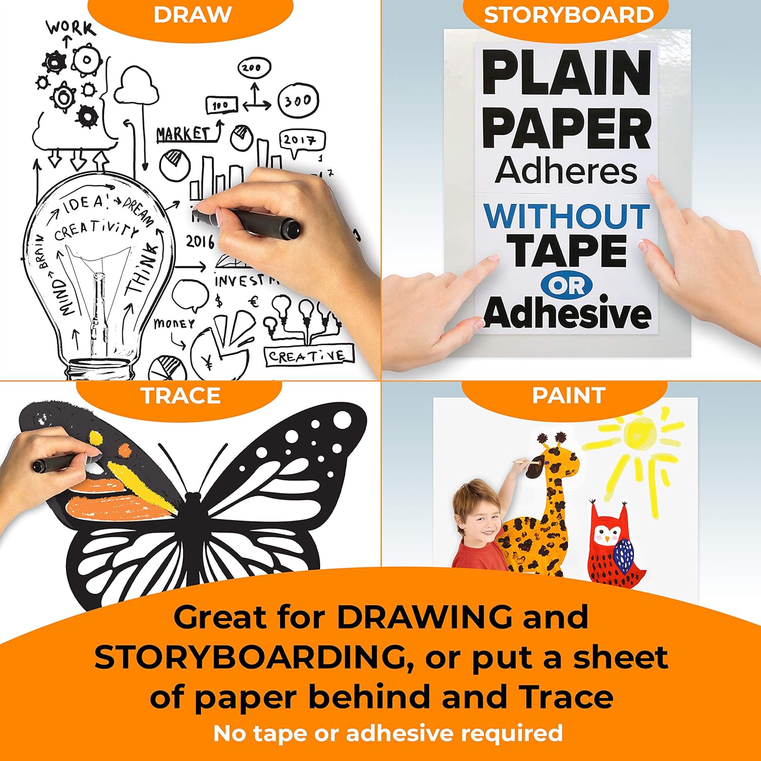 - ๐๐ฅ๐ข๐ง๐ ๐๐ง๐ฒ๐ฐ๐ก๐๐ซ๐ ๐๐จ๐ซ ๐๐๐ฌ๐ฌ-๐ ๐ซ๐๐ ๐ ๐ฎ๐ง: Easily sticks to most smooth indoor surfaces like walls, desks, or windowsโno adhesives needed! This thin, user-friendly material is repositionable, erasable, and recyclable, making it ideal for kids drawing, teen girl stuff, craft supplies, and office supplies. Smooth out wrinkles by hand for a flawless finish.