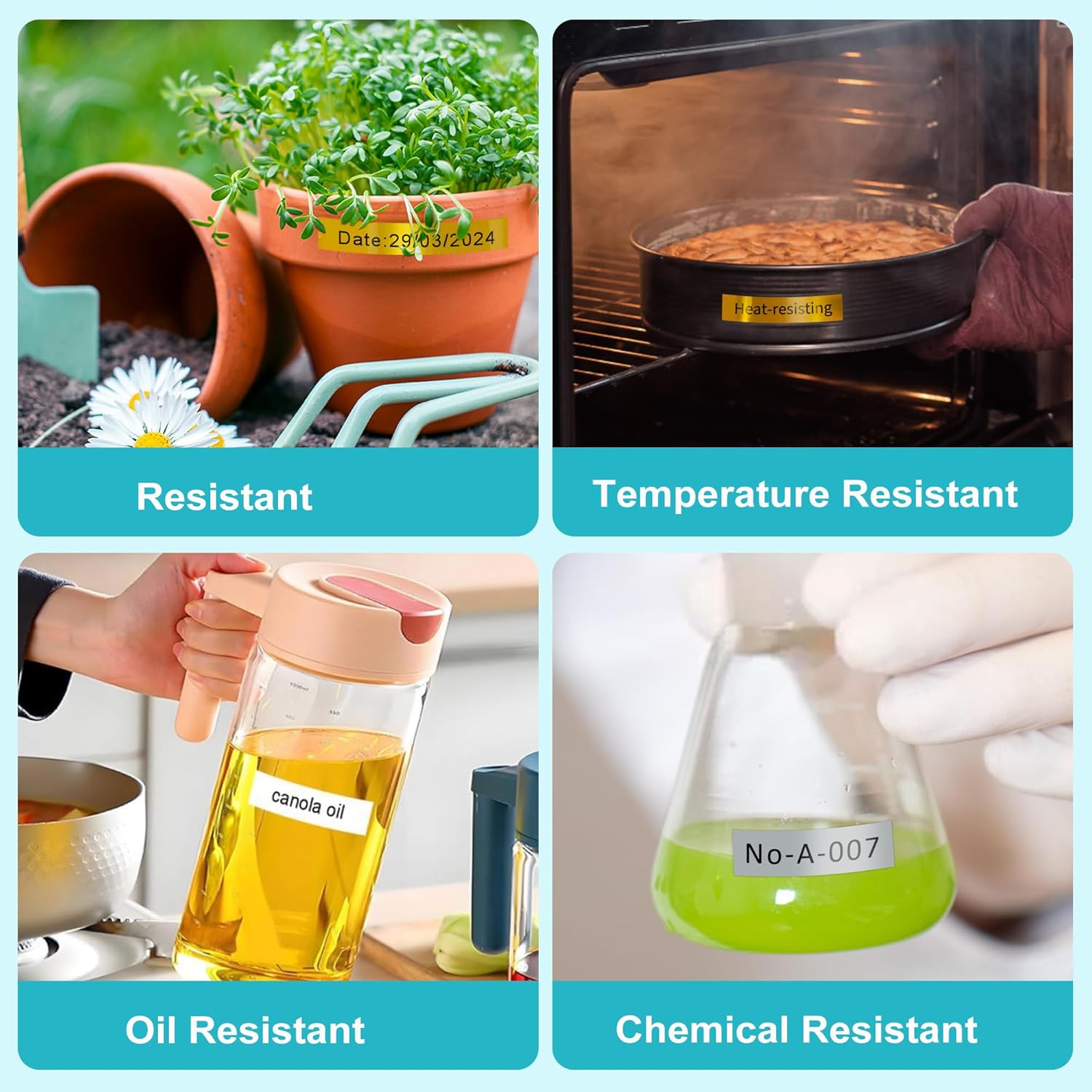 - Standard Laminated Tapes: TZ Tape 12mm split backing for easy peeling; No sticky residue remains when the labels are removed; Laminated and Water Resistant, Abrasion Resistant, Temperature Resistant, Fade Resistant