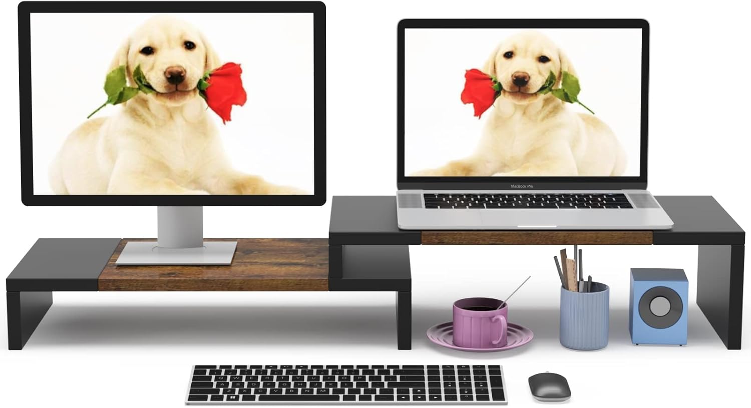 - ❤Computer Monitor Riser: This dual-monitor stand features a sturdy construction black with a rustic brown wood finish for an added rustic and unique look.