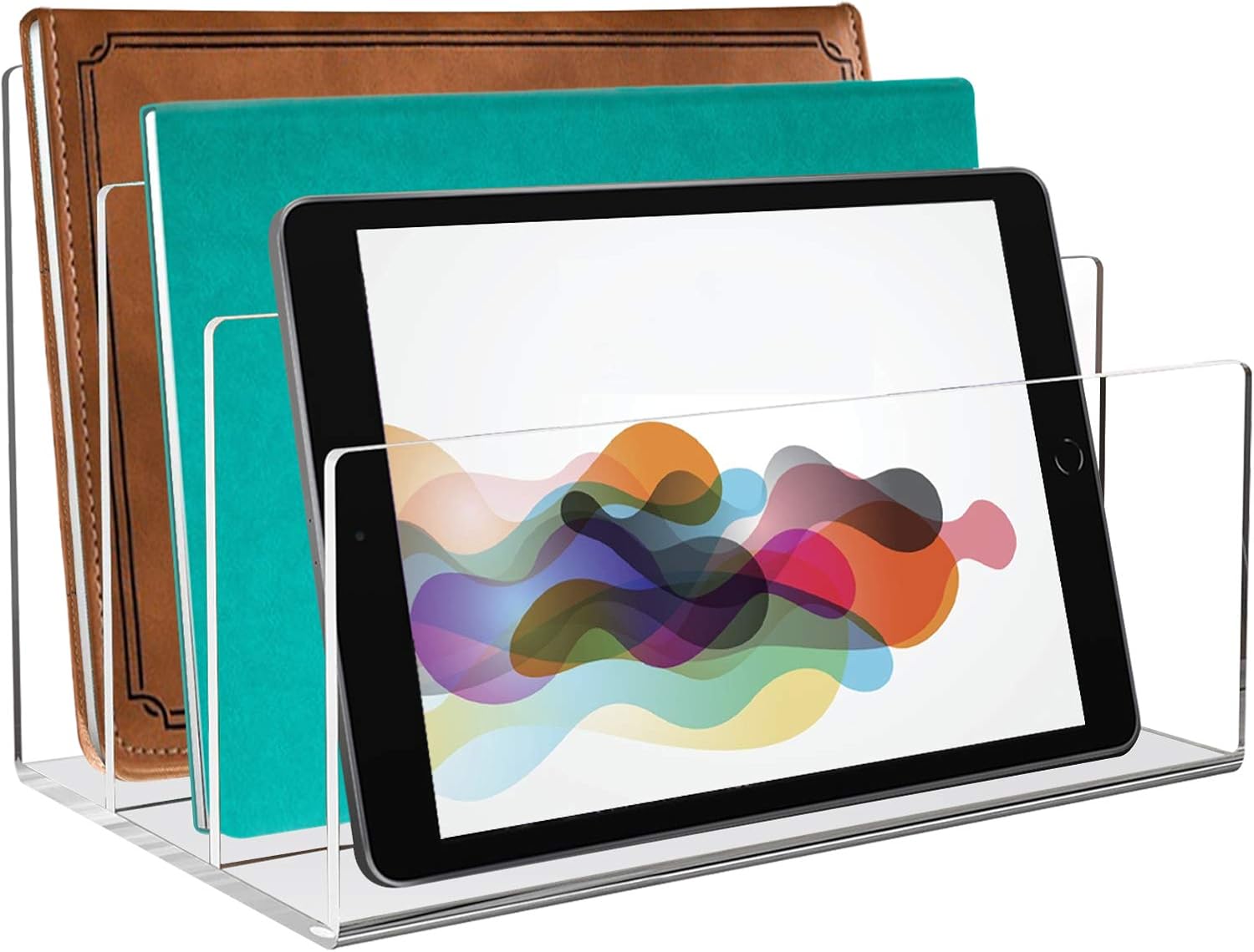 - Acrylic Desk Organizer Size: 9 x 6.5 x 6.5 inch, great desktop organizer for you to organize documents, magazines, files, letters, books, binders, file folders, mails, eyeshadow palettes etc