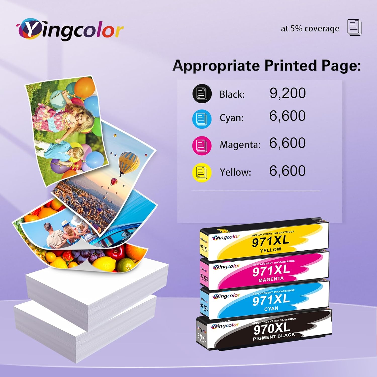 - High Capacity: About 9200 Pages Compatible for HP 971xl Ink Cartridges and about 6,600 Pages per 971 ink for hp at 5 percent Coverage