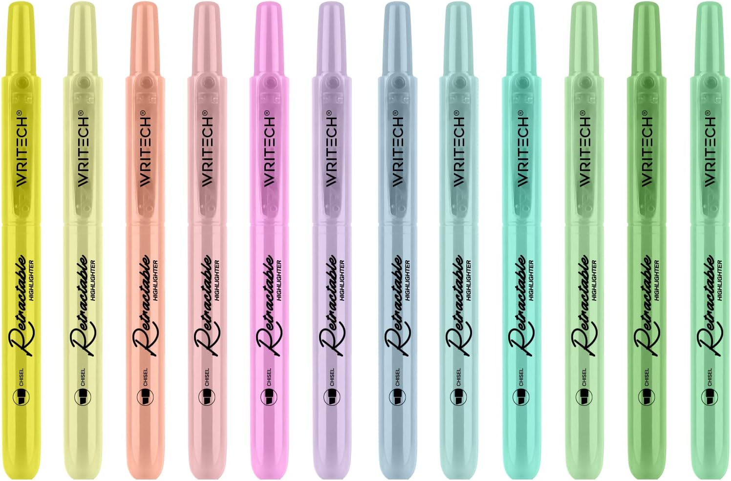 WRITECH Retractable Highlighters Assorted Colors: Chisel Tip Click Aesthetic Highlighter Marker Pens Pack Multi Colored Ink No Bleed Smear for Highlighting Journaling (12ct Neutral)