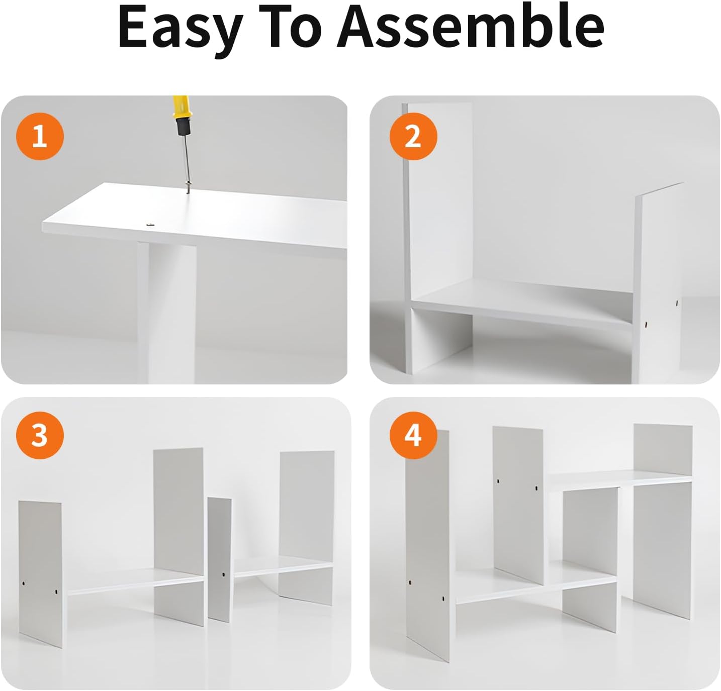 - EASY TO ASSEMBLE: Wood desktop bookshelf is easy and simple for you to install on your own. Screws are included. Dimensions (inches): L12.59(can extends to 24.01) X W6.69 X 13.77H. Assembly required.