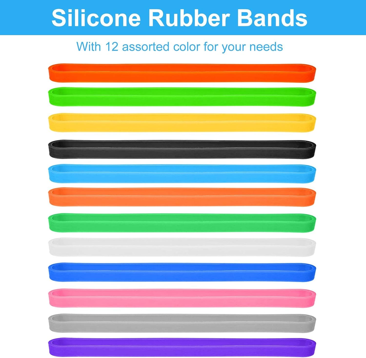 - Package includes: come with 12 pcs 12”, 12 pcs 8” and 12 pcs 5.5” silicone rubber bands, total 36 pieces; Each size have 12 different colors, white, black, red, yellow, green, blue, orange, fluorescent green, grey, pink, sky blue, purple, 1 pack for each color; These bright and cute colors bands will meet your different packing and decorating needs