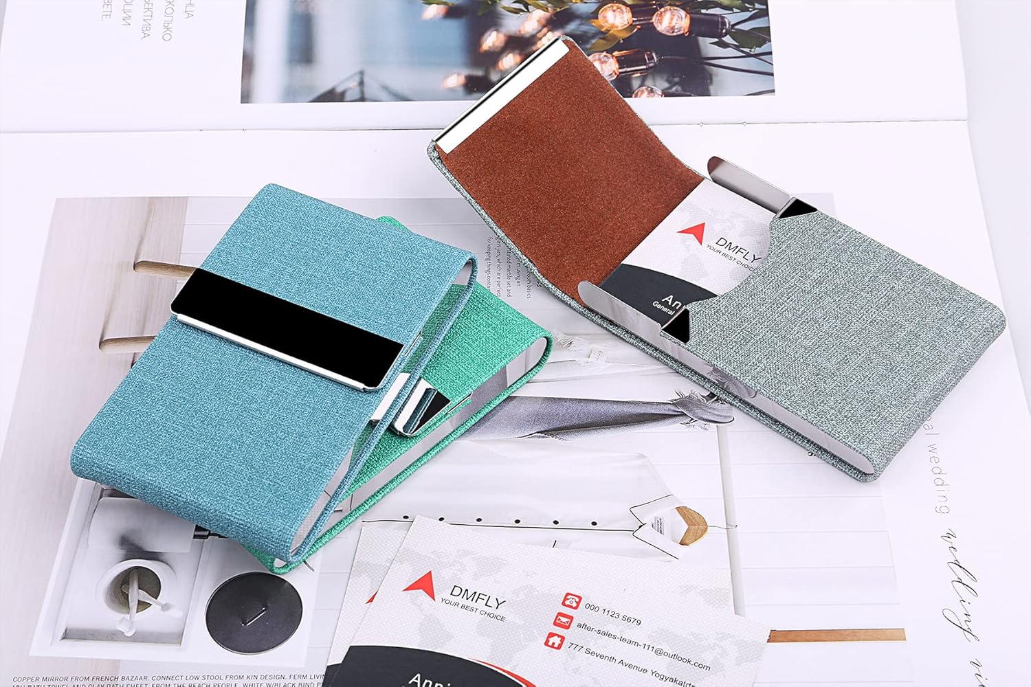 - RFID BLOCKING DESIGN: Meet more people's needs, DMFY Leather Business card case equipped with Advanced RFID BLOCKING SECURE TECHNOLOGY, which can perfectly block unwanted RFID scanners.