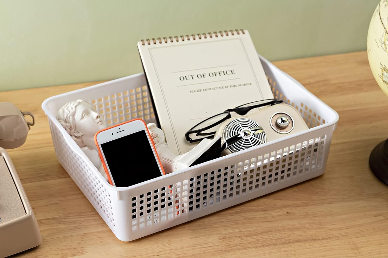 A4 Size Plastic Storage Basket,Desktop File Paper Letter Organizer Tray, 6-Packs (White)