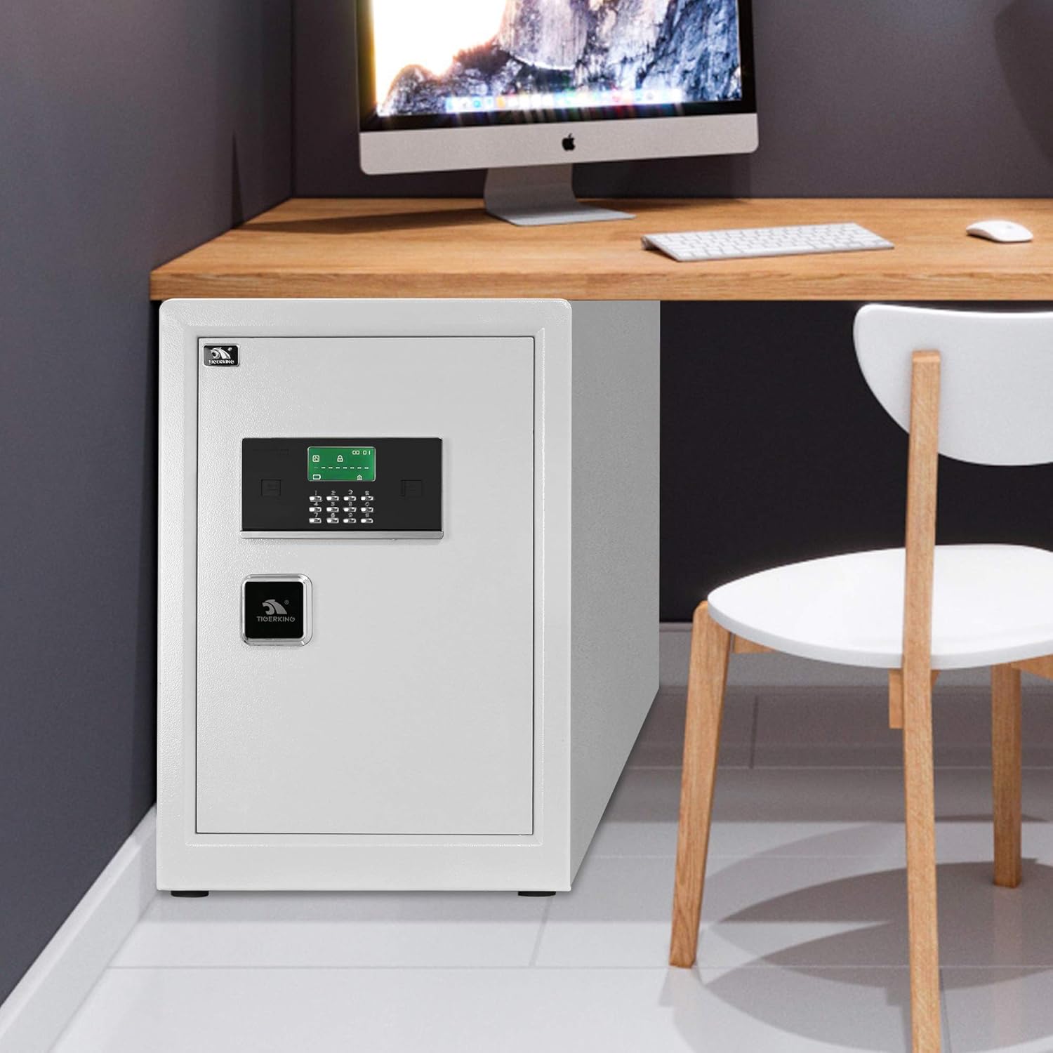 TIGERKING Safe Box,Home Safe,Large Security Box with Double Safety Key Lock and Password for Money and Document,3.7 Cubic White