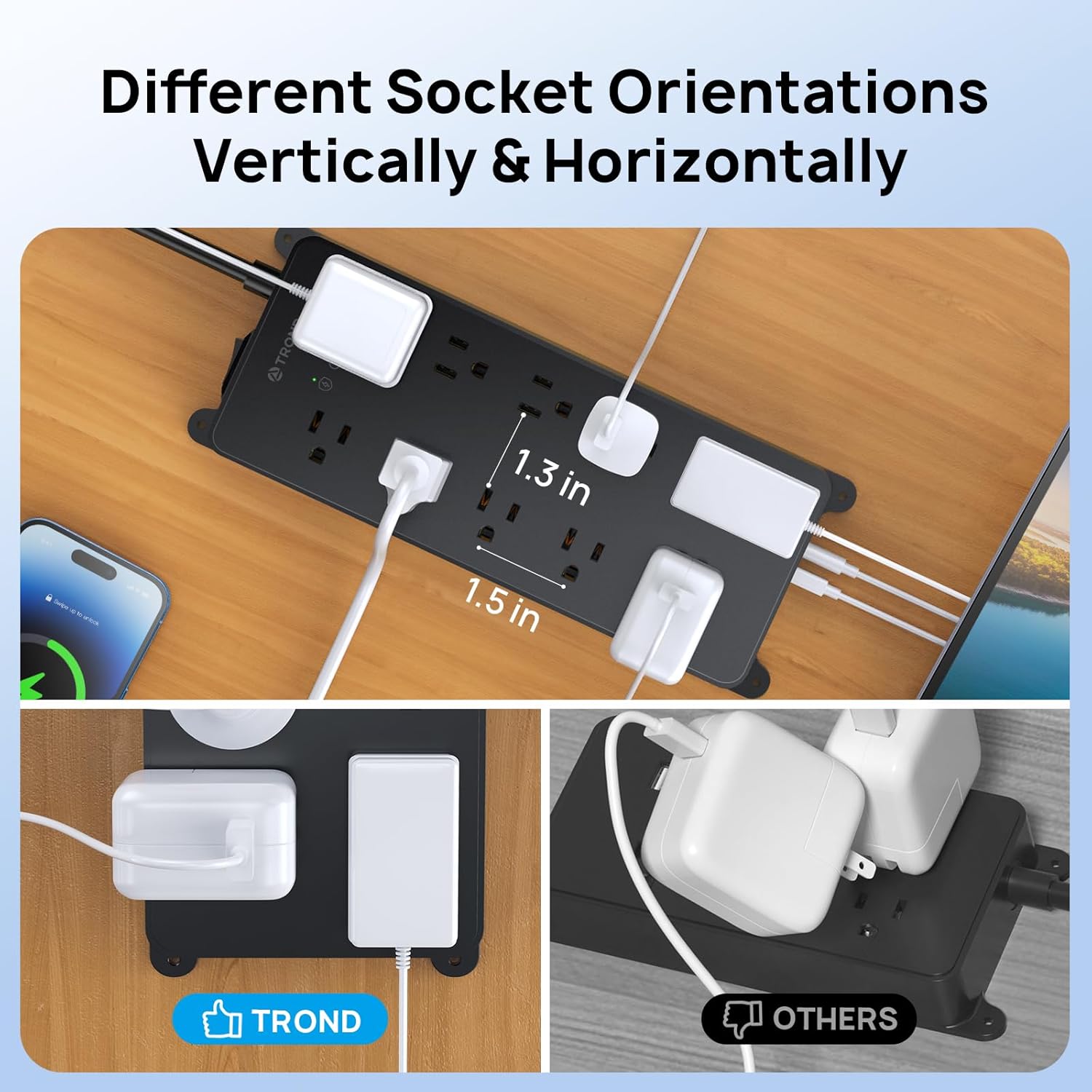 - Power Strips with Surge Protection: This ETL-listed power strip is made from top-grade UL94 V-0 flame-retardant material. With 4000J of surge protection, it safeguards your TV, computers, phones, and office equipment from potentially damaging power disturbances, providing peace of mind