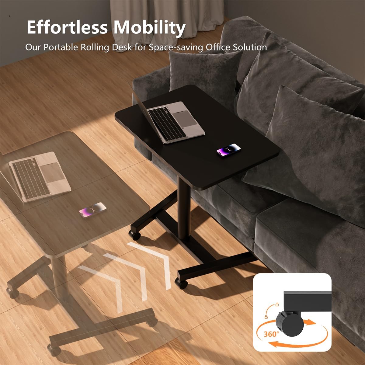 28-Inch Mobile Standing Desk Adjustable Height, Portable Standing Desk with Lockable Wheels, Rolling Table for Home Office Classroom Hospital (Jet - Black)