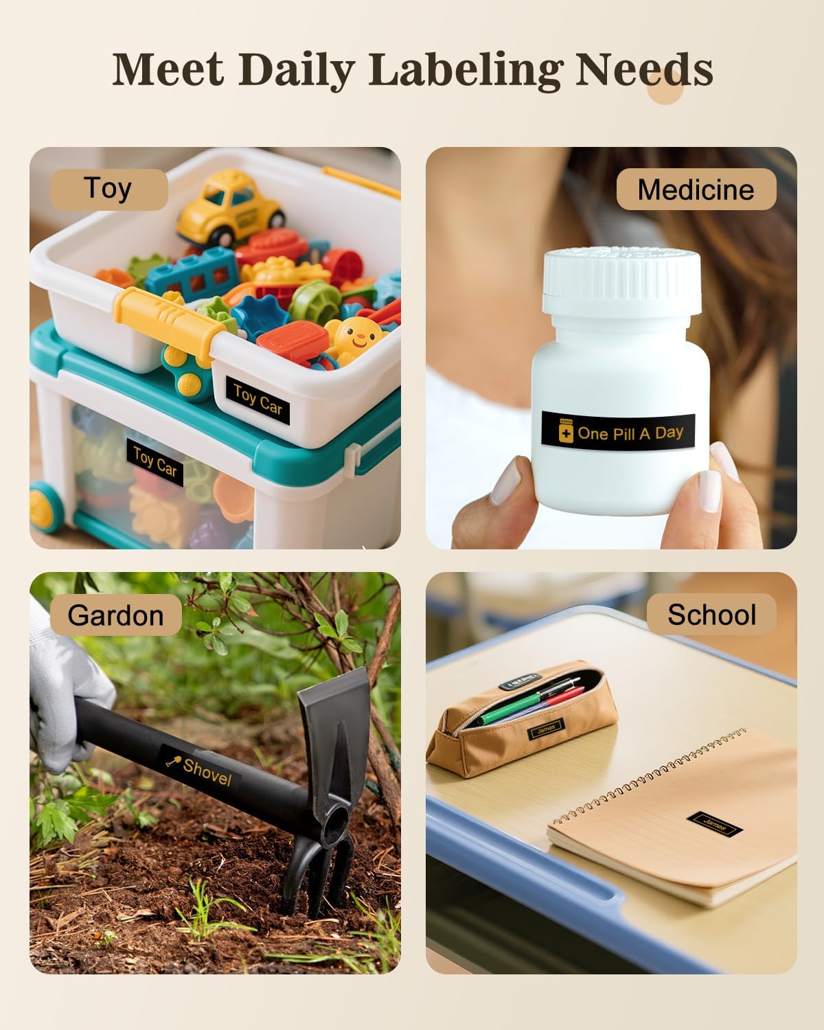 - Suitable for Outdoor and Indoor: Gold label maker tz tape has a self-adhesive backing. Widely used in offices, laboratories, kitchens, homes, warehouses, hotels, supermarkets, schools, etc.