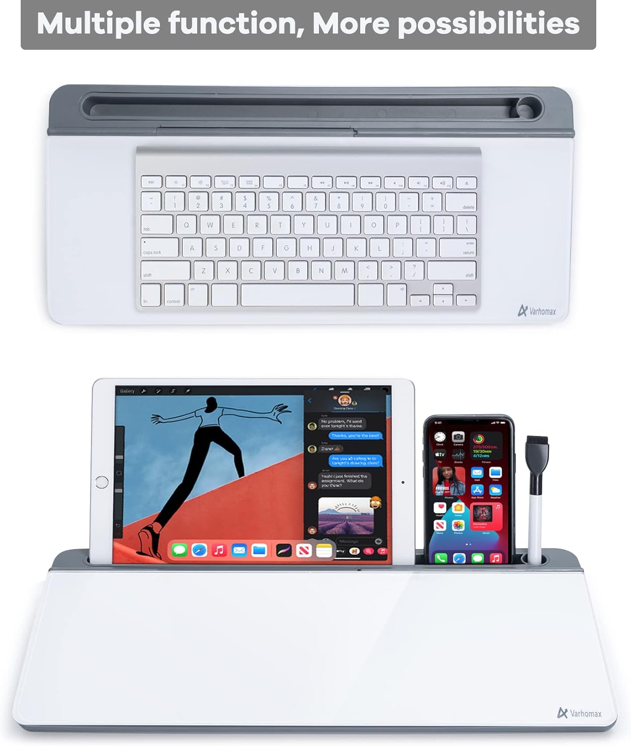 - Multi-function: Other than the glass board and built-in storage box, this product also has a slot on the top which can hold a phone or a tablet.