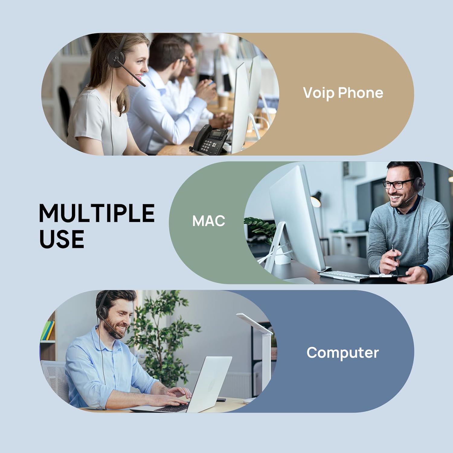Yealink UH34 USB Headset with Noise Cancelling Mic, Work Headset for PC, Teams Certified Headphones for VoIP Phone Softphone, in Line Control