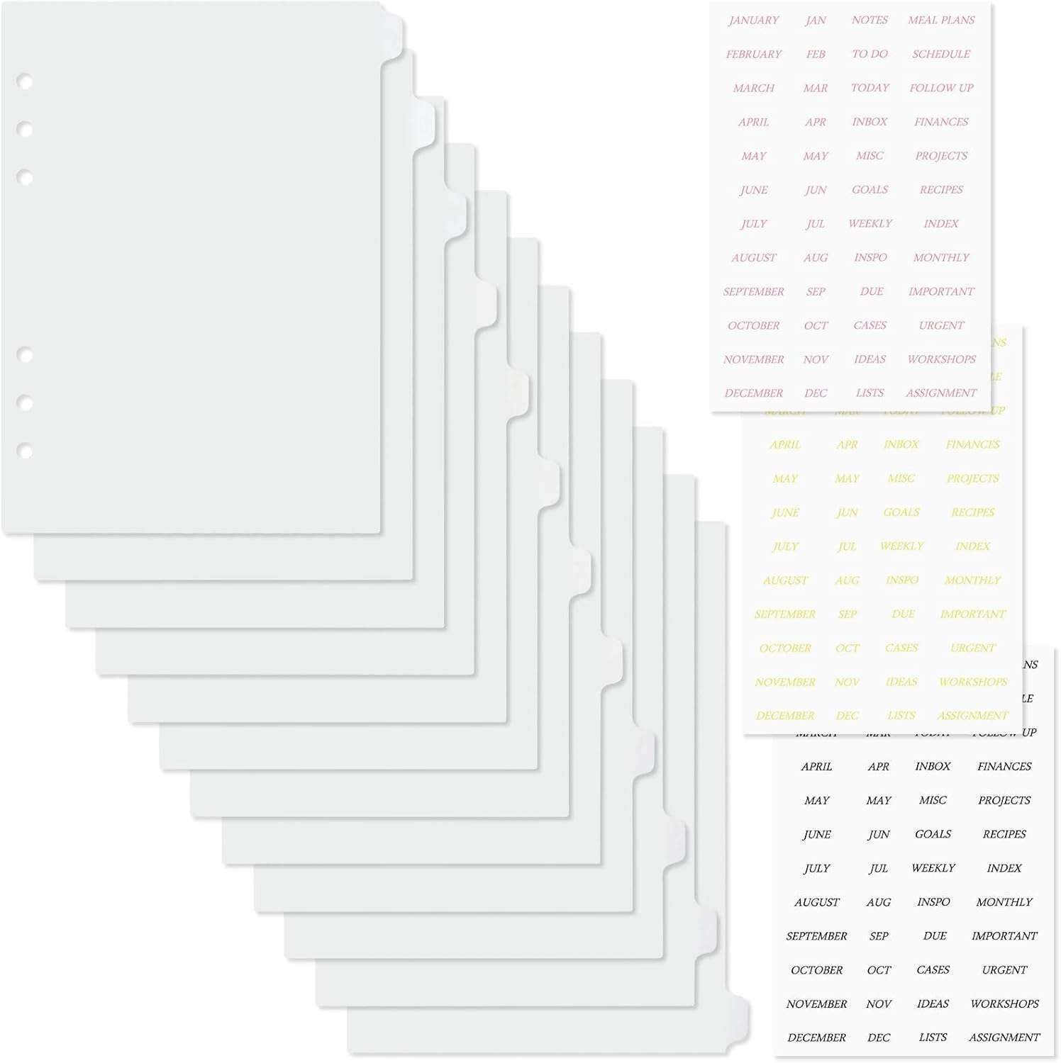 - Package: 12 pcs tab dividers with 3 sheets of monthly stickers