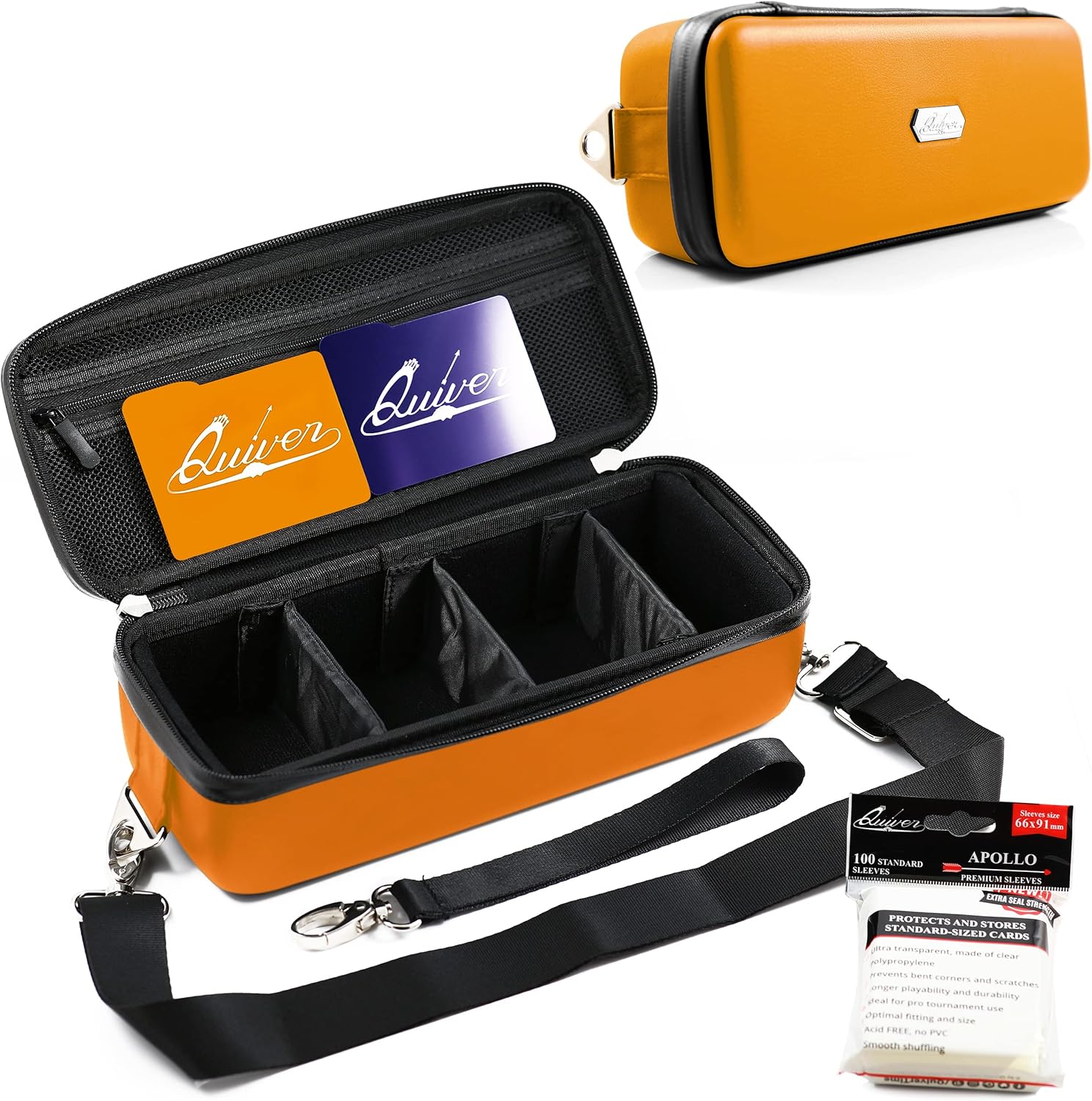 - Protective and Spacious Portable Card Holder: Designed to meet the needs of all types of TCG collectors, the Orange Bolt Carry Case is 2/3 the size of the Quiver and is compatible with Pokémon cards. It provides a secure storage solution for organizing and transporting card decks, including rare holo cards and essential energy cards, remain well-organized and protected during transport.