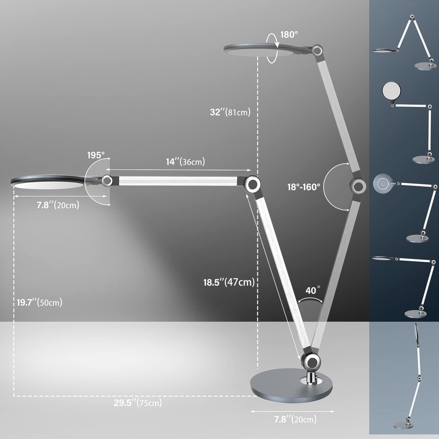 - Multi-angle Adjustment & Touch Control Design: Flexible adjustment of various angles to meet lighting needs in different scenarios. The circular illuminator design makes the light more concentrated and bright, good for study and working. You can also set the brightness levels just by sliding the touch pad lightly.