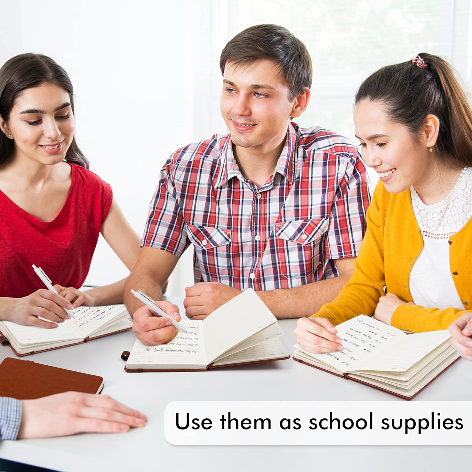 - Feela 24 Pack Classic Ruled Notebooks contains 24 classic brown ruled sturdy cover notebooks and 24 Black Retractable Pens. Each of the notebooks measures 8.3” x 5.1”, which is perfect to carry and easily held by young girls and boys. These black cute pens are customized to be placed in the pen holder, which is pretty convenient.