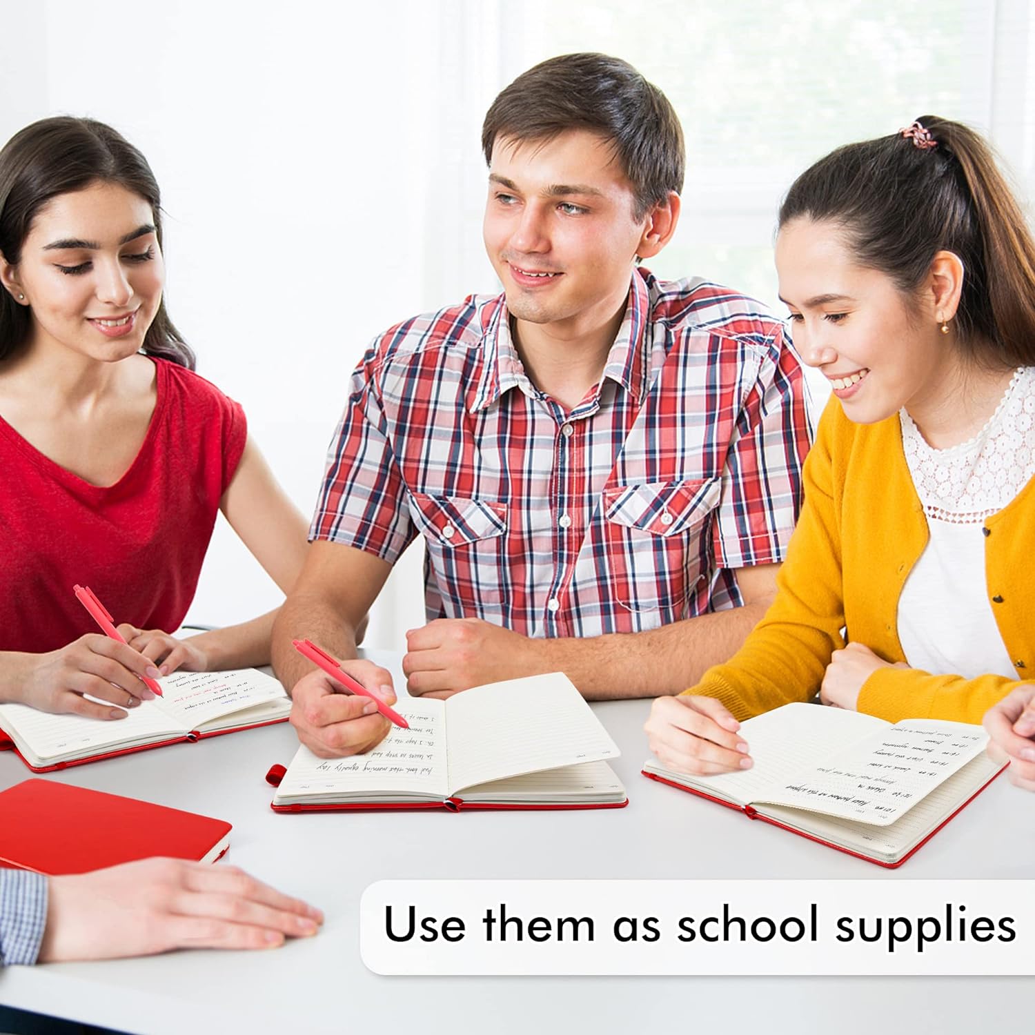 - Feela 5 Pack Classic Ruled Notebooks contains 5 classic red ruled sturdy cover notebooks and 5 Black Retractable Pens. Each of the notebooks measures 8.3” x 5.1”, which is perfect to carry and easily held by young girls and boys. These black cute pens are customized to be placed in the pen holder, which is pretty convenient.