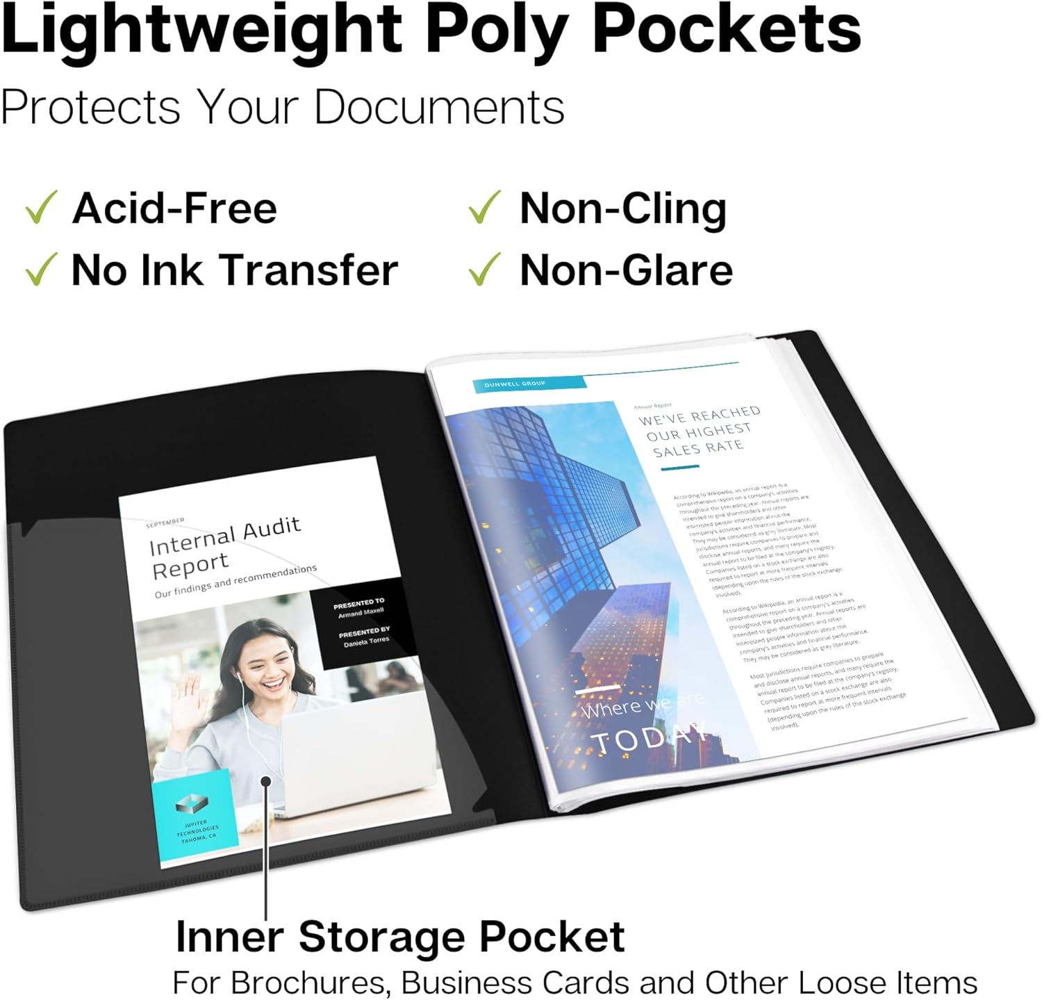 - Archival Quality: 9x12 Sheet Protectors: Lightweight poly is non-glare, non-cling, acid-free, no ink lift-off. 9x12 Album preserves your valued papers, photography, artwork, watercolors.
