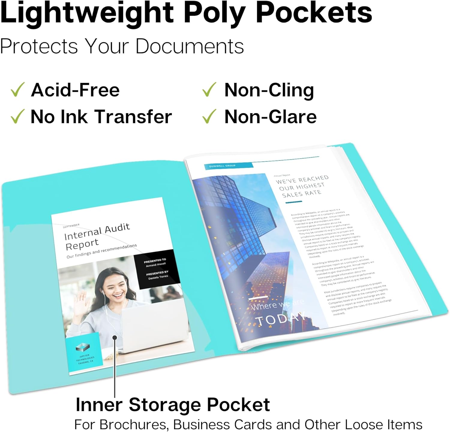 - Includes: 1 Aqua 9x12 poly binder folder with 24 bound (non-refillable) top-loading sheet protector sleeves, Acid-free art portfolio displays 48 viewable pages of 12 x 9 content, A4, or 8.5x11" paper.