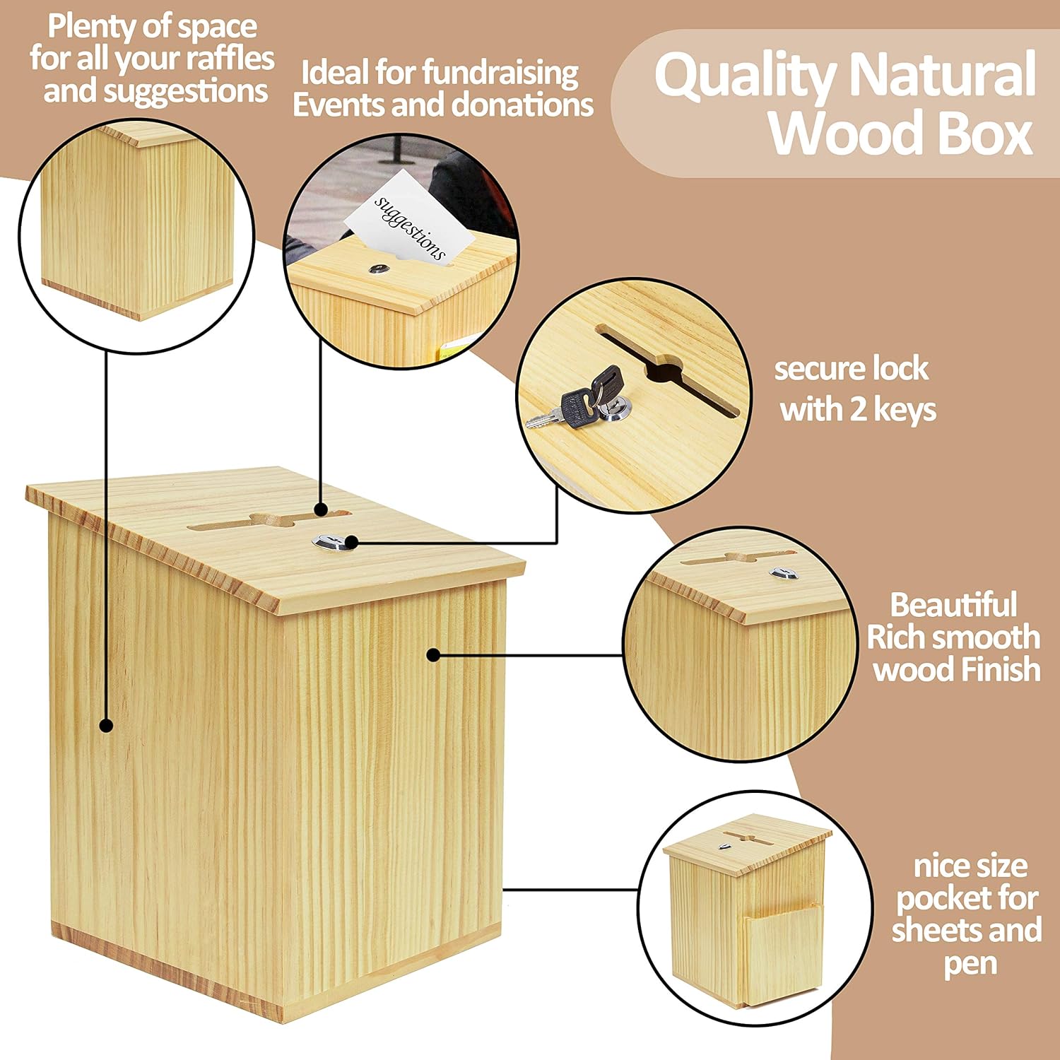 - Wood Suggestion Box ~ Ballot Box with Pocket ~ Locking Hinged Lid and Pen ~ for Counter-top or office use