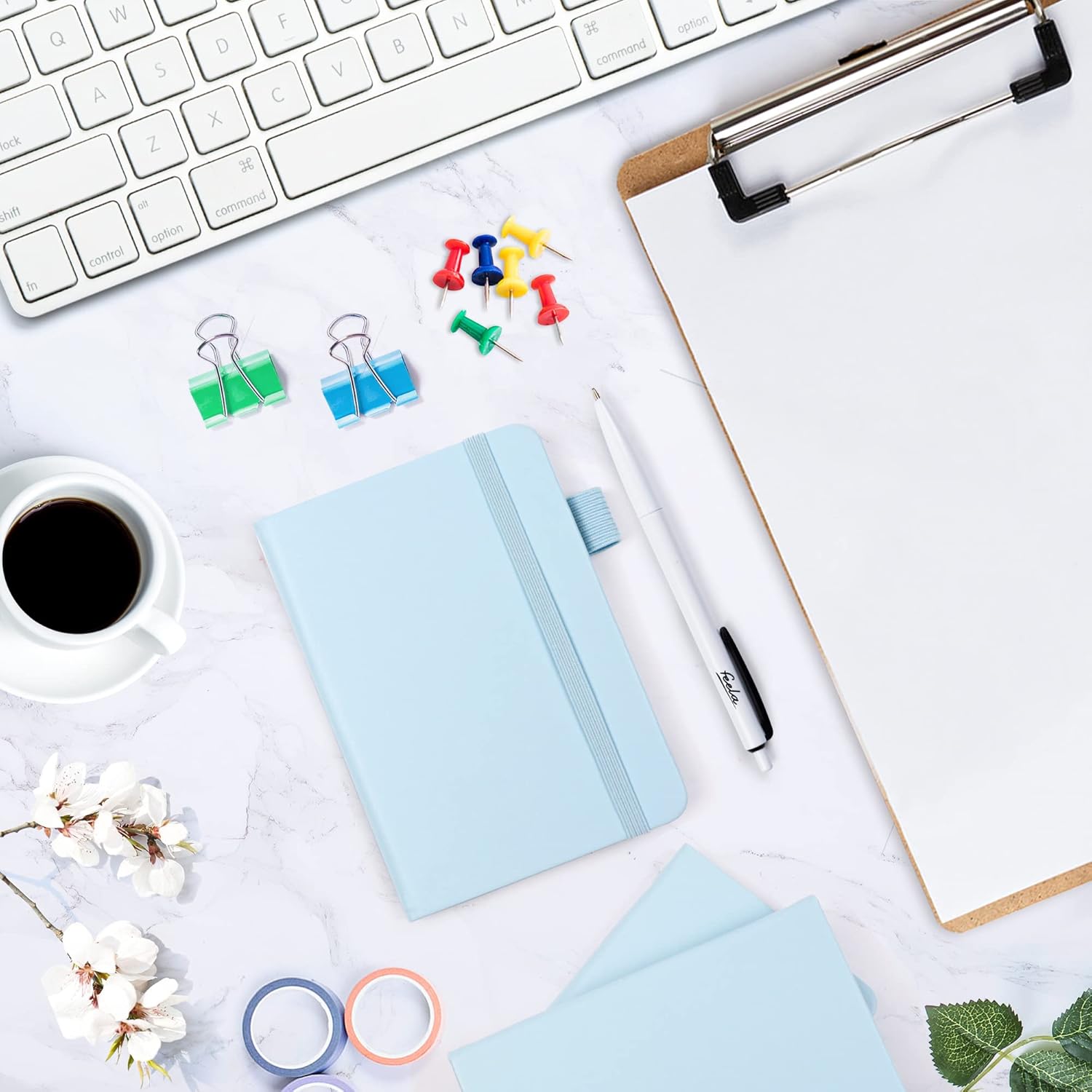 feela 15 Pack Pocket Small Notebooks Bulk, Mini Cute Memo Notepads Hardcover College Ruled Lined Journals with Pen Holder for Women Girls Office School, with 15 Black Pens, 3.5”x 5.5”, A6, Light Blue