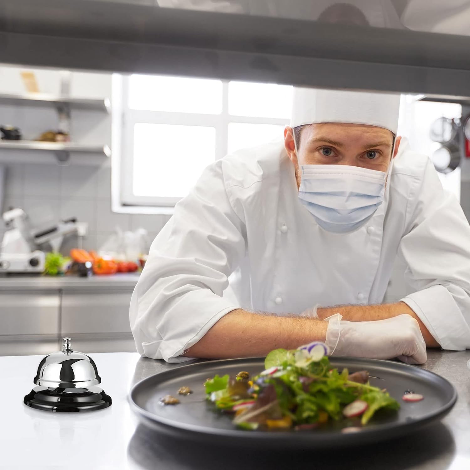 - Metal Call Bell: Bells featutre a metal construction, a mirror effect chrome polished finish dome, and a matte black non-slip base, anti-rust, beautiful, sturdy and durable; Silver color make it looks modern and professional