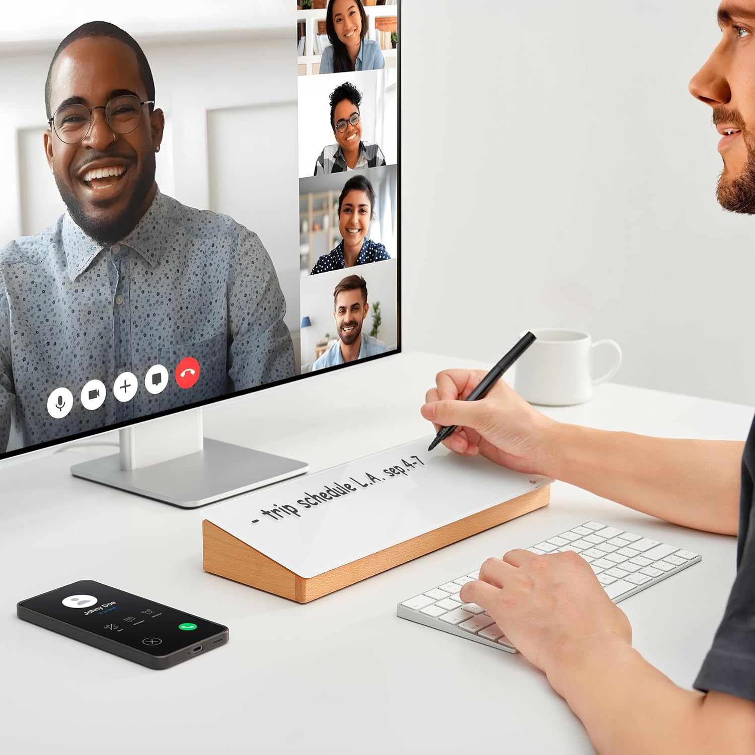 - MULTI-FUNCTIONAL | This Desk Whiteboard & Organizers Designed to Sit Between a Keyboard and Monitor. The Glass Writing Surface for Note Taking / To Do List / Reminder, a Perfect Alternative of Sticky Notes, Help Cutdown Your Paper Use, Save the Environment. It's Wood Organizers for Easy Storing and Accessing of Desk Accessories, Save Space and Declutter Your Desktop.