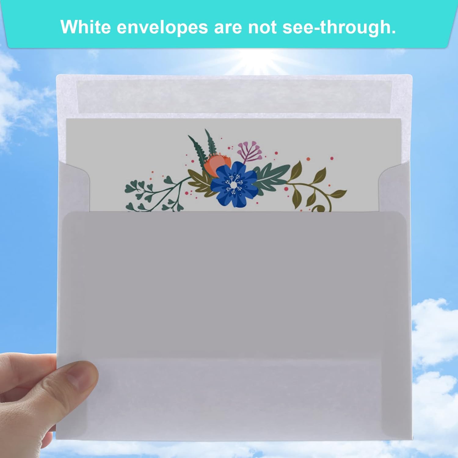 - Size: A7 size white environmental protection envelope, made of 5 1/4" x 7 1/4" standard A7 size, with a square seal in the form of a glue booklet, made of high-quality paper, thick and durable, with excellent sealing performance. Your privacy will be well protected.