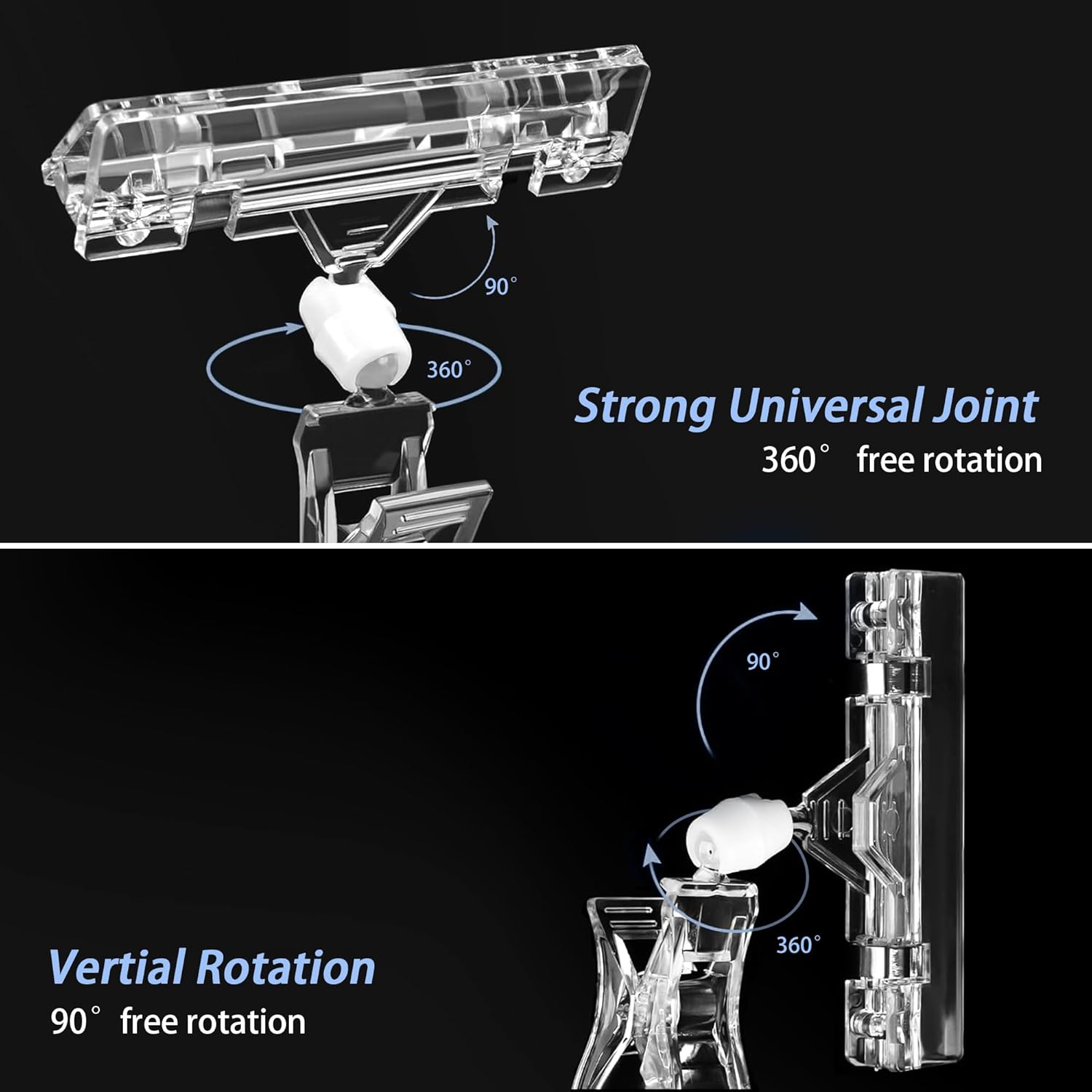 - Strong Clamping Force: With super clamp mouth, Rotatable Clip allows you to adjust it at optimal position, easy to clamp, to rack or shelf. Suitable for cylindrical objects, plates, square tubes, partitions, round tubes, etc. Objects with a diameter or thickness not exceeding 2.5 cm