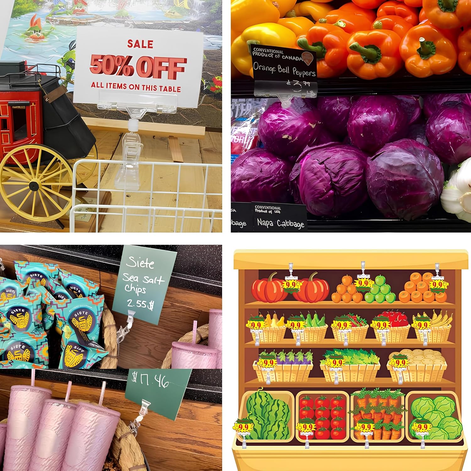 - Suitable for Information Display: Clip-on signs are very suitable for displaying sales signs, policy notices and other signs in stores, restaurants, cinemas, coffee shops, clothing stores, supermarkets, fruit stores, retail stores and warehouses, meeting different display needs