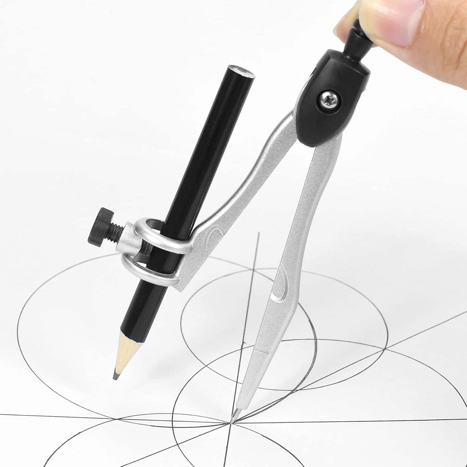 - A Practical Compass Geometry Set:Long-Lasting metal compasses will not bend, Ergonomically designed compass head is comfortable to hold, Universal Holder Compass work with any standard sized pencil or pen